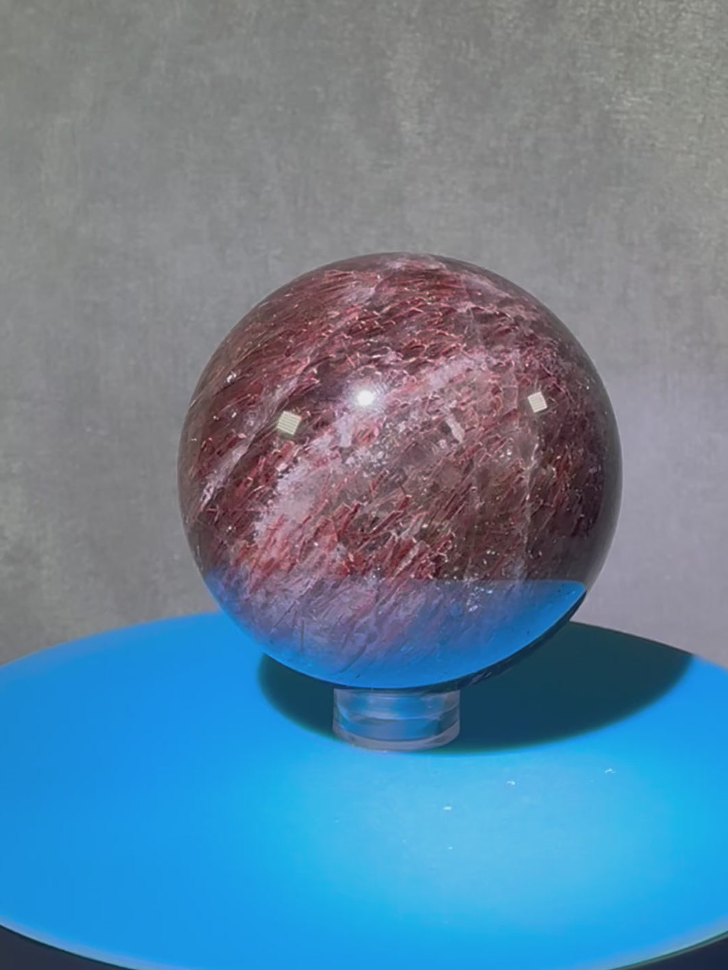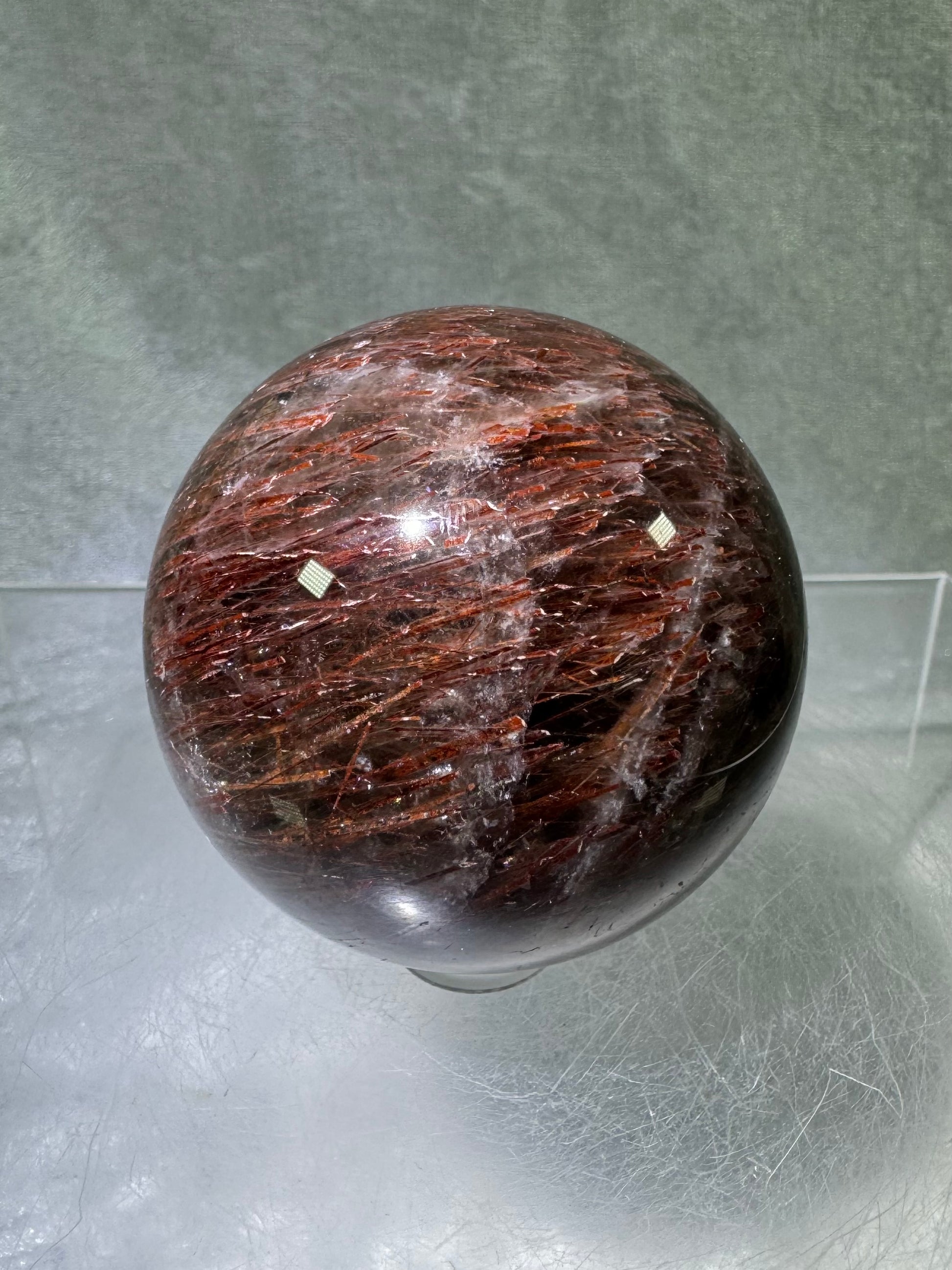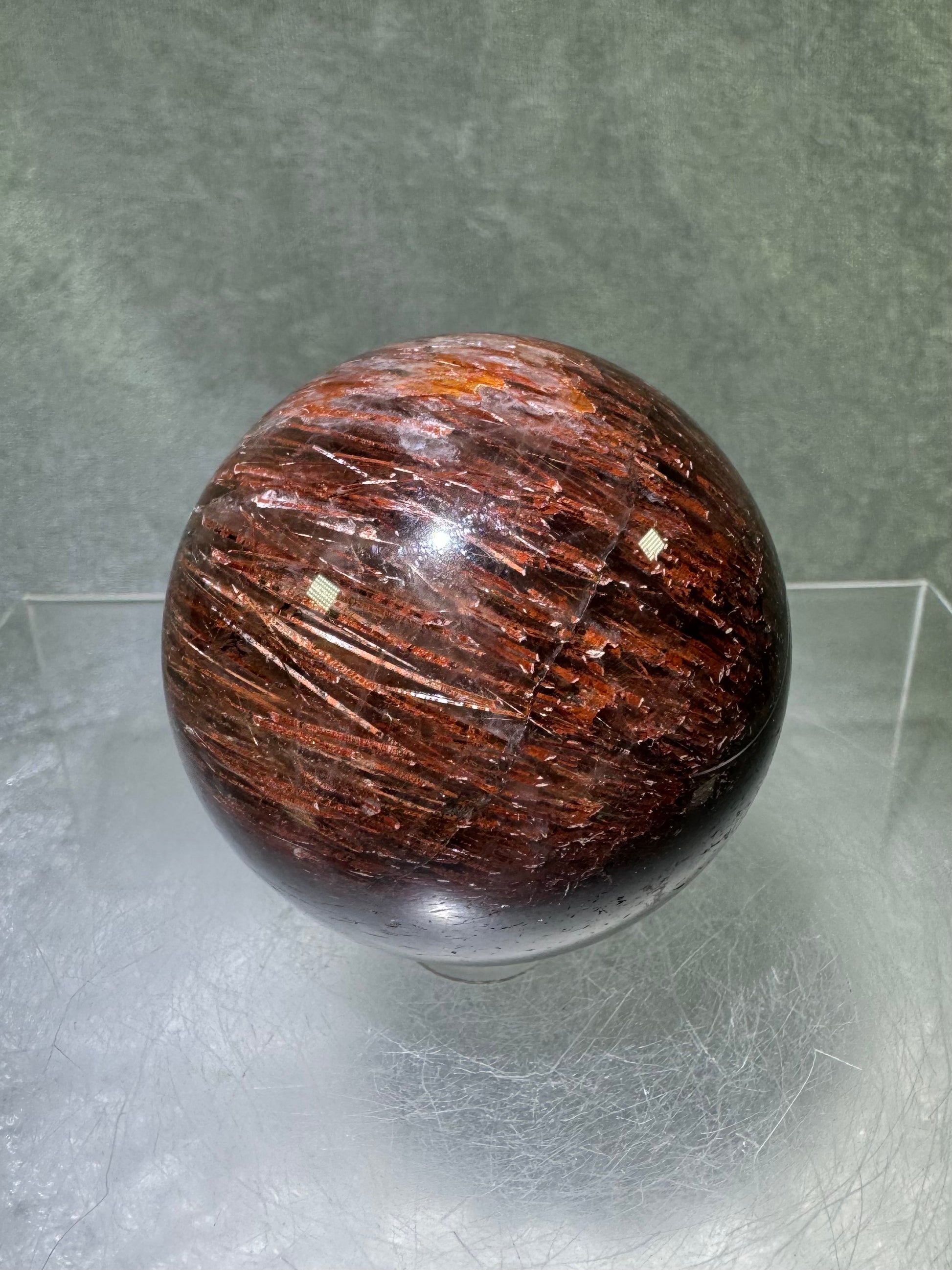 Tourmalinated Quartz Sphere. 54mm. Gorgeous Red Tourmaline Inclusions. Unique And Rare Display Sphere.