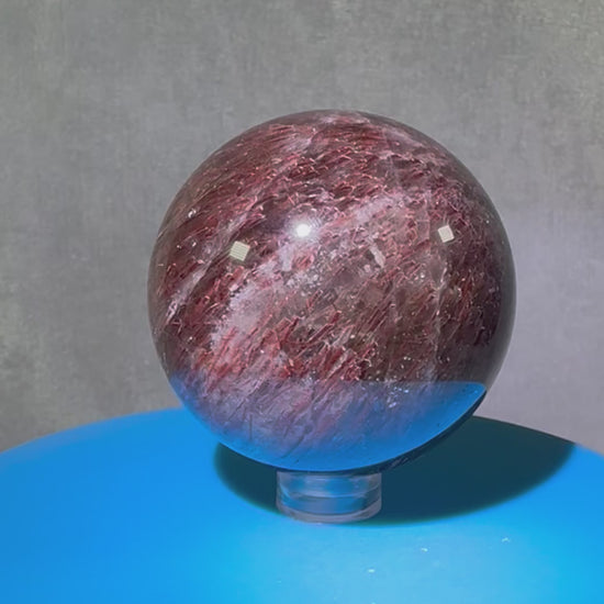 Experience the beauty and rarity of our amazing Tourmalinated Quartz Sphere. This gorgeous display sphere showcases stunning red Tourmaline inclusions, making it truly one-of-a-kind. Admire the intricate patterns and natural formations of this amazing display sphere.