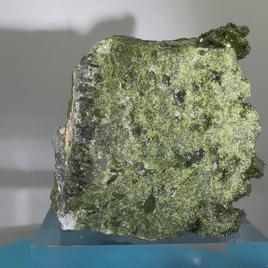 This Turkish Epidote and Quartz Specimen is a stunning addition to any collection. Sourced from Hakkari, Turkey, this forest epidote is of the highest quality and boasts incredible flash and sparkle. Don't miss out on this amazing find! Clear acrylic display base is included.