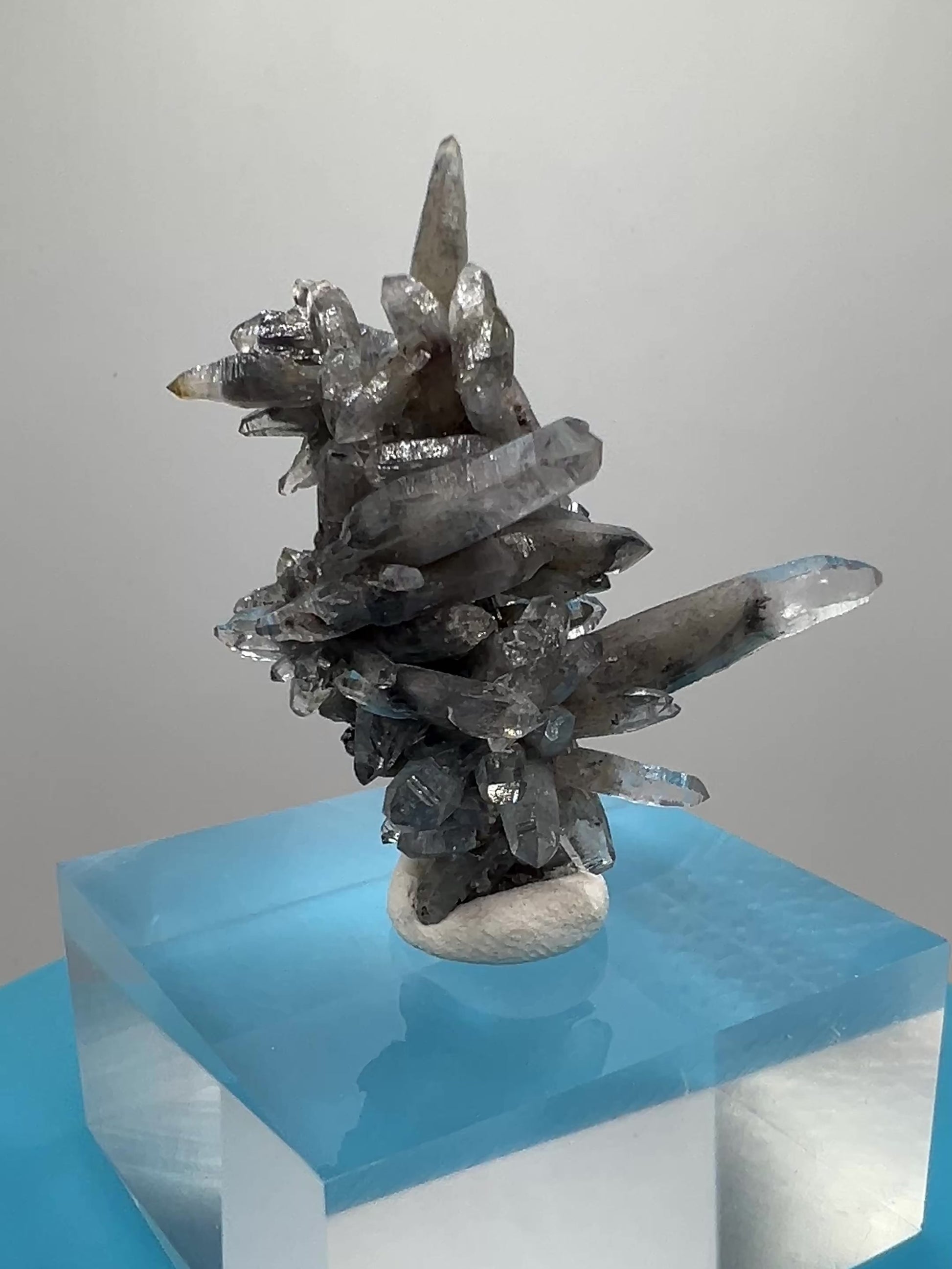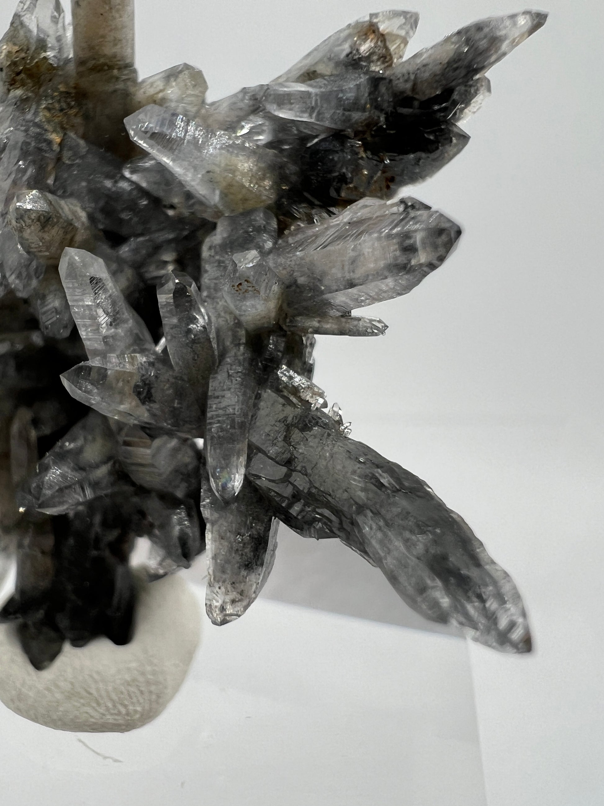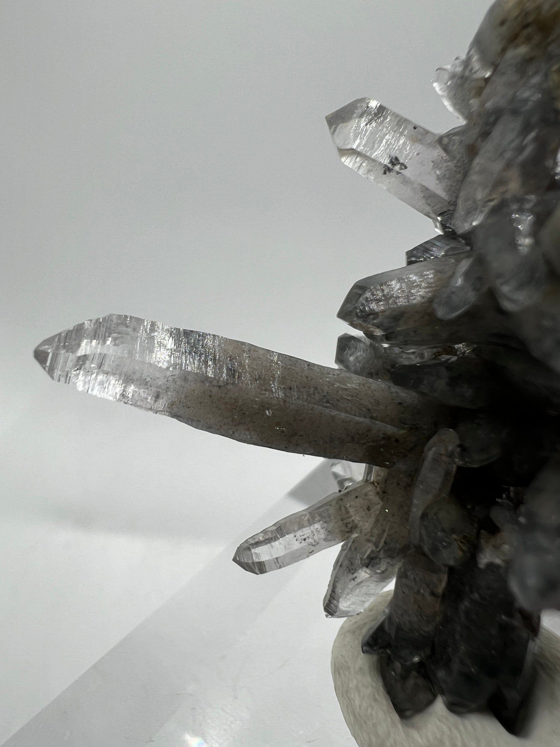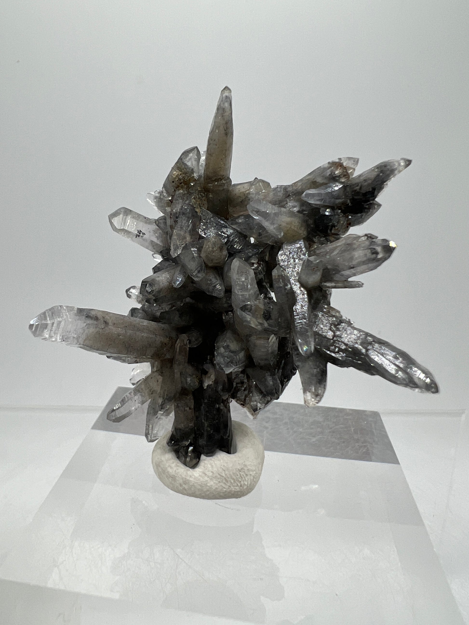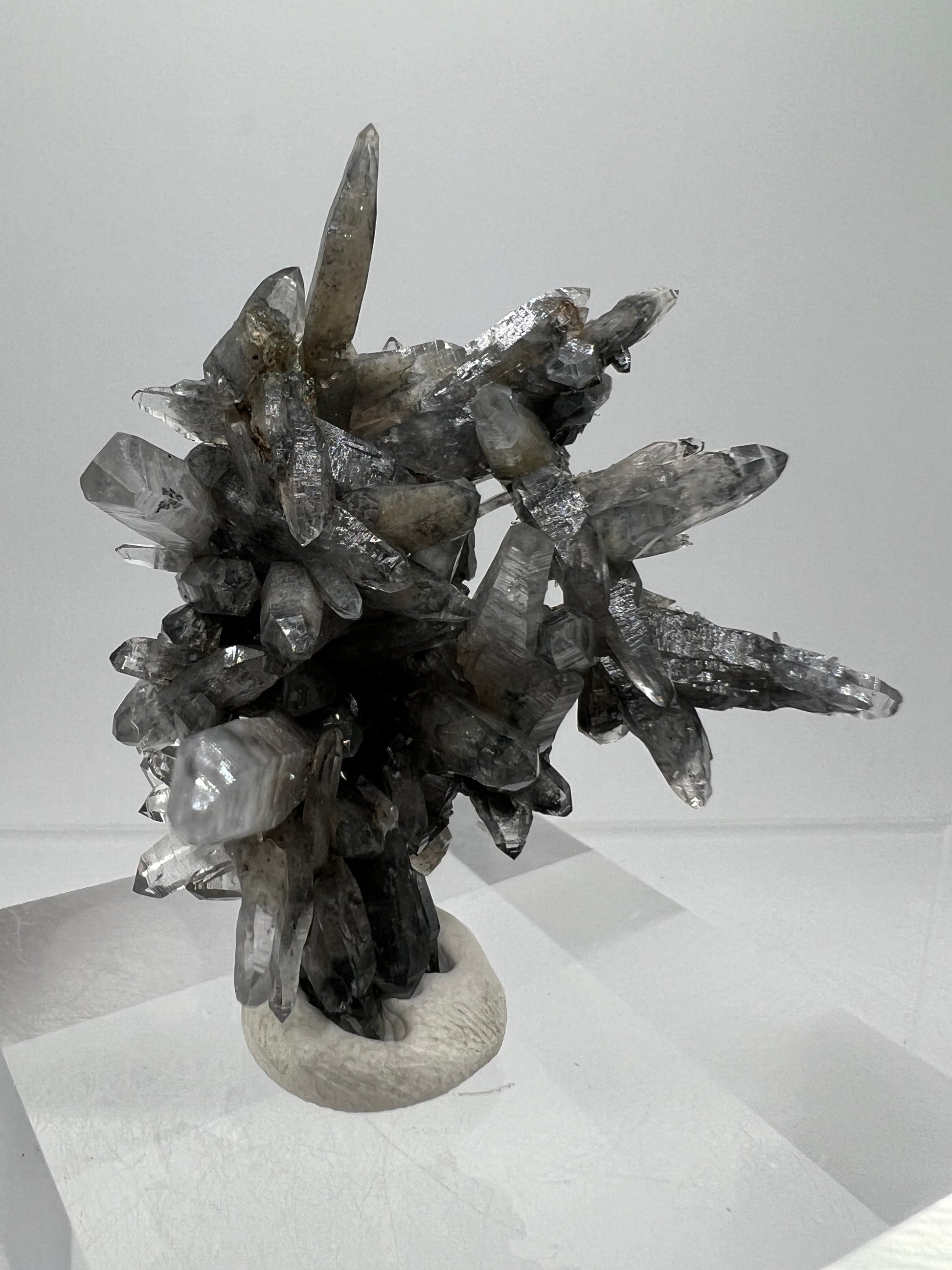 Brand new discovery from the world famous mines in Piedra Parada, Veracruz, Mexico. A few pockets of this material was recently found, where instead of the famous purple amethyst they discovered this stunning black phantom quartz. Initial testing has shown the black inclusions to be Magnetite. Truly one of a kind, and a very limited amount will be available. Don’t miss out on this gorgeous display specimen. Clear acrylic display base is included.