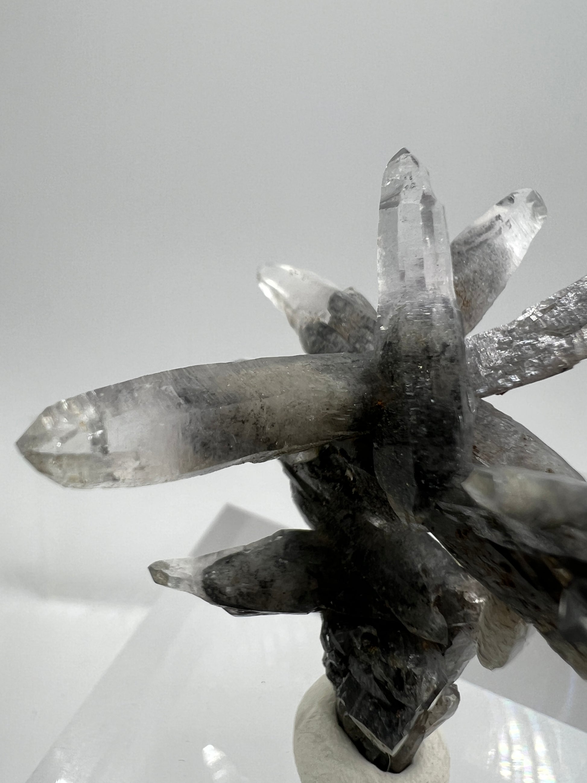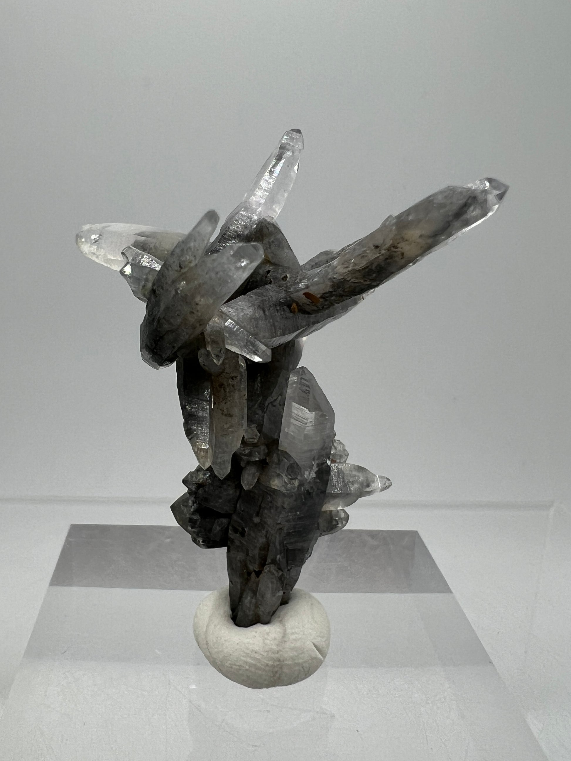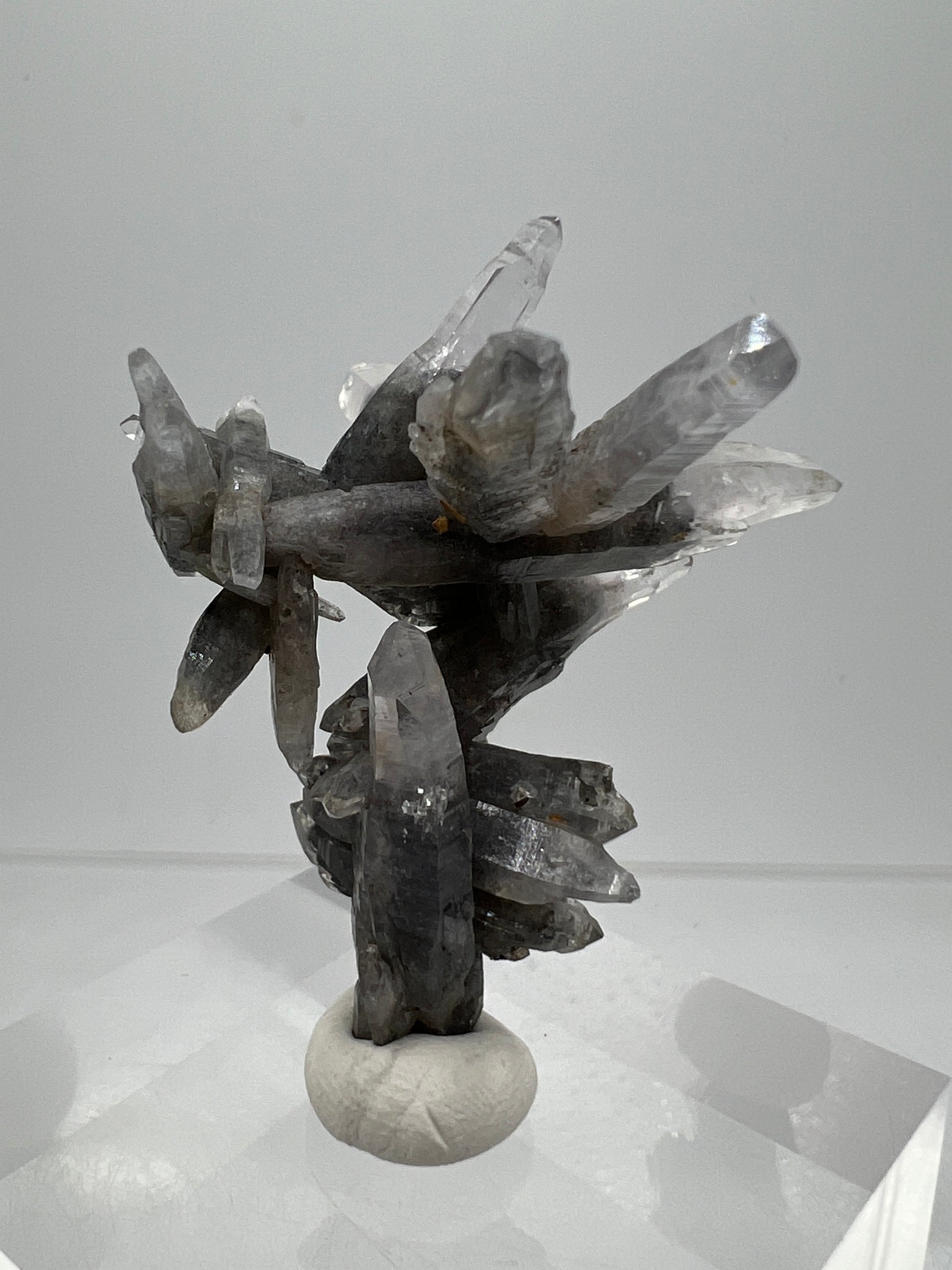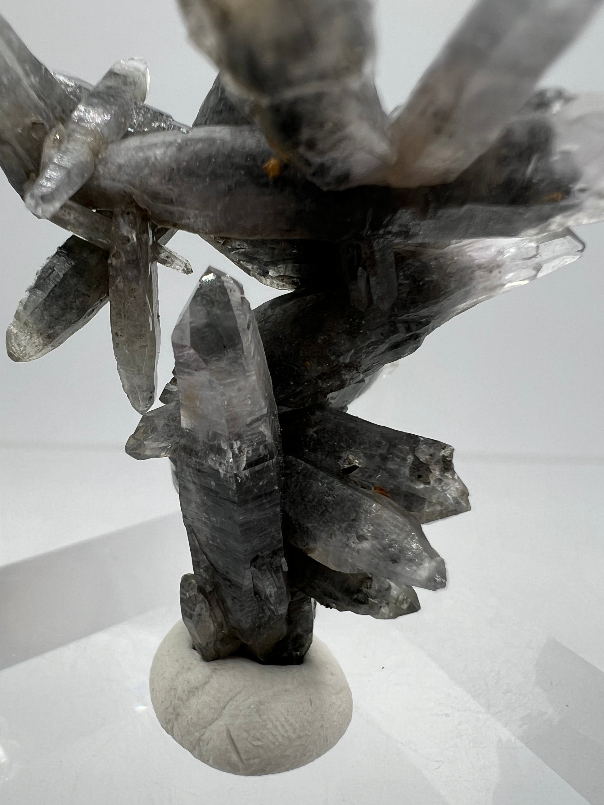 Brand new discovery from the world famous mines in Piedra Parada, Veracruz, Mexico. A few pockets of this material was recently found, where instead of the famous purple amethyst they discovered this stunning black phantom quartz. Initial testing has shown the black inclusions to be Magnetite. Truly one of a kind, and a very limited amount will be available. Don’t miss out on this gorgeous display specimen. Clear acrylic display base is included.