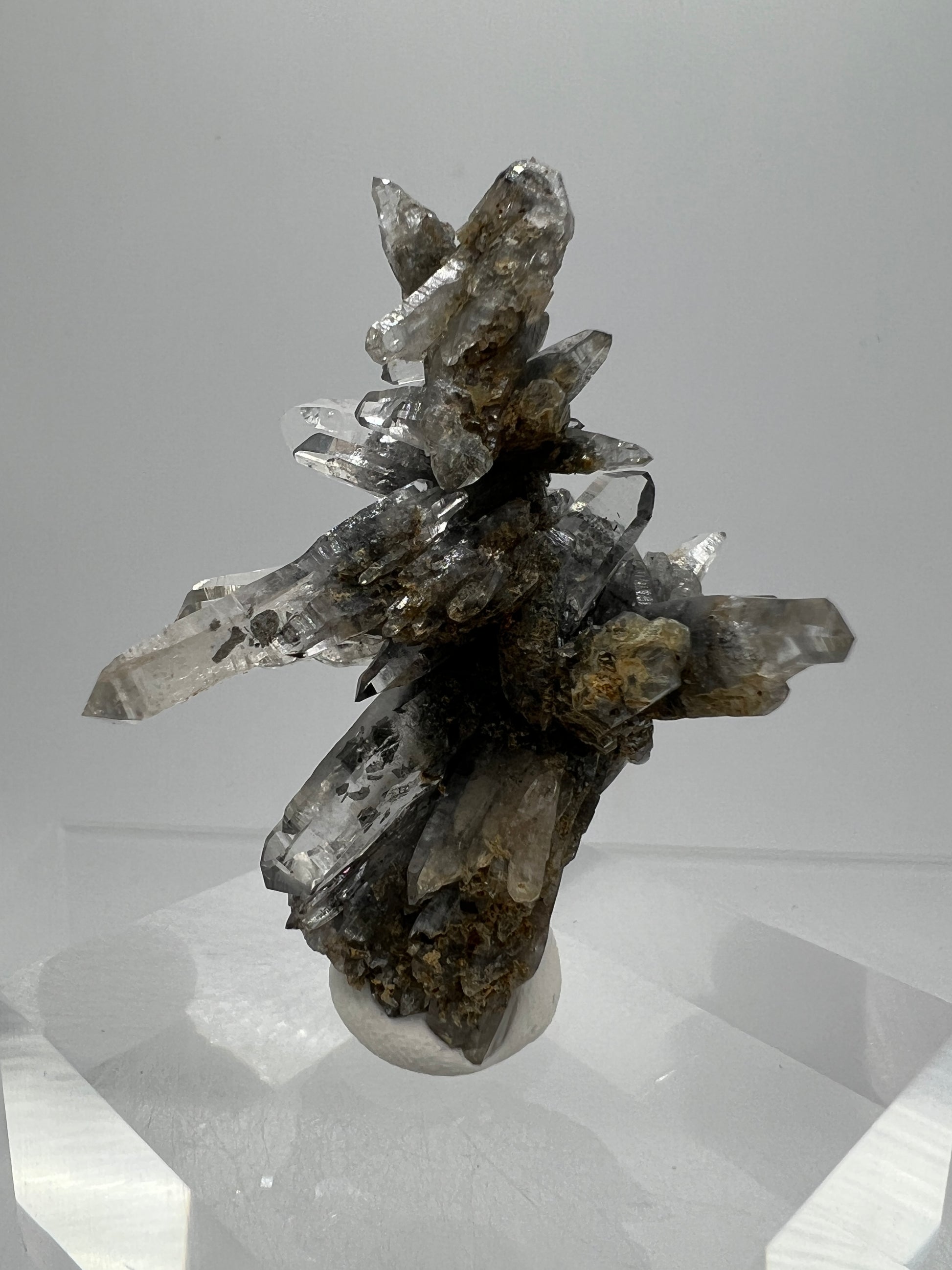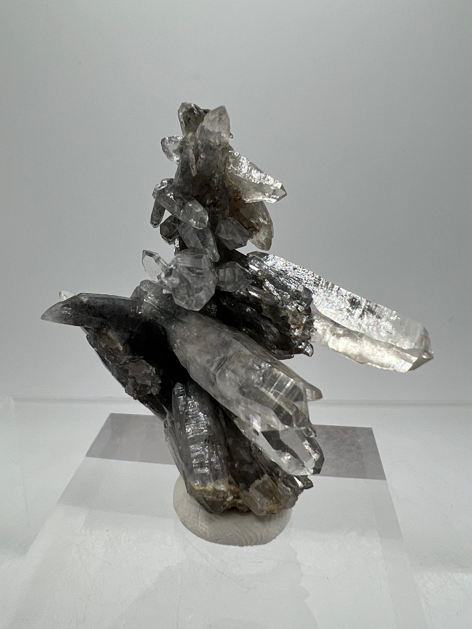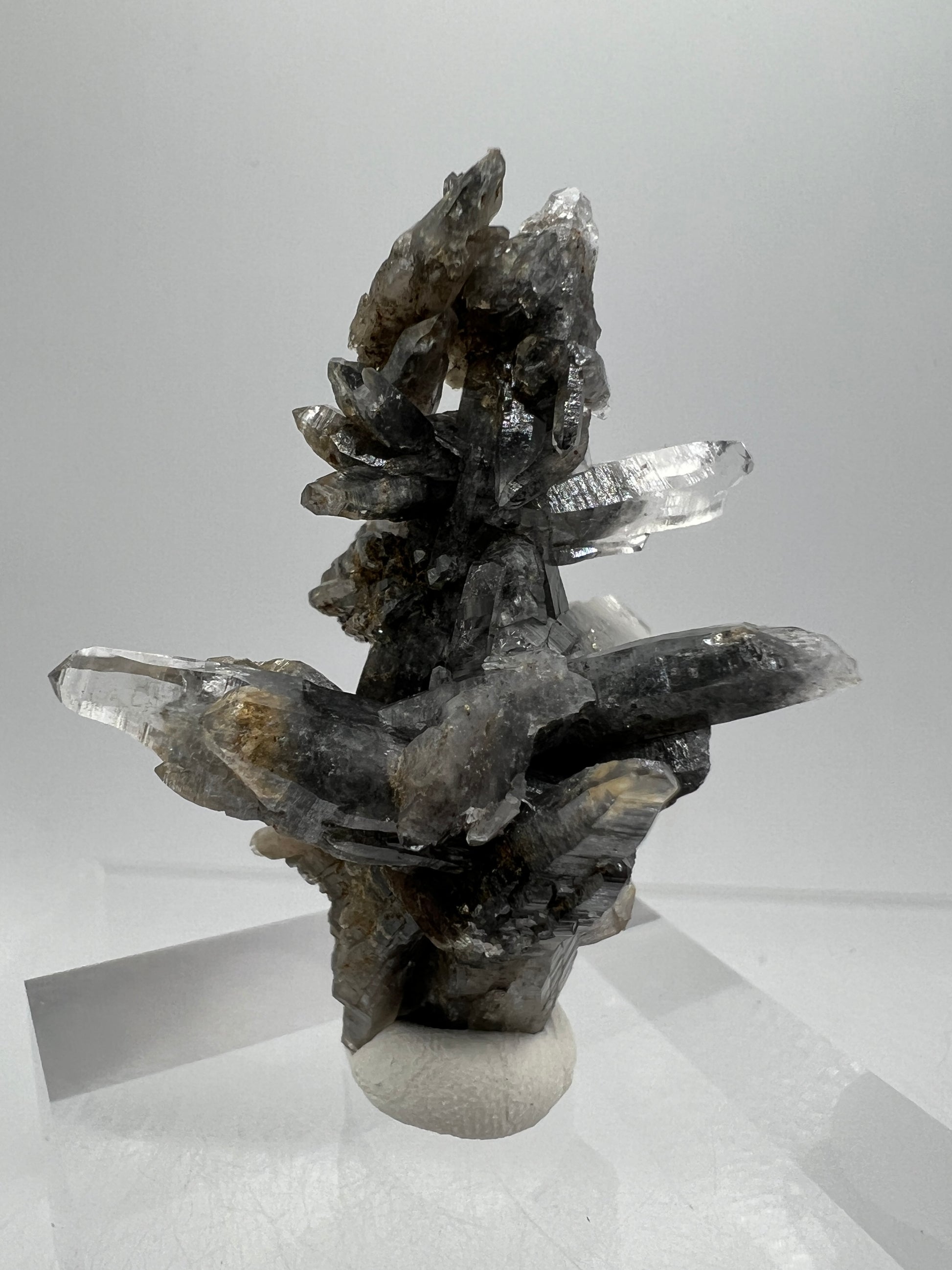 Brand new discovery from the world famous mines in Piedra Parada, Veracruz, Mexico. A few pockets of this material was recently found, where instead of the famous purple amethyst they discovered this stunning black phantom quartz. Initial testing has shown the black inclusions to be Magnetite. Truly one of a kind, and a very limited amount will be available. Don’t miss out on this gorgeous display specimen. Clear acrylic display base is included.