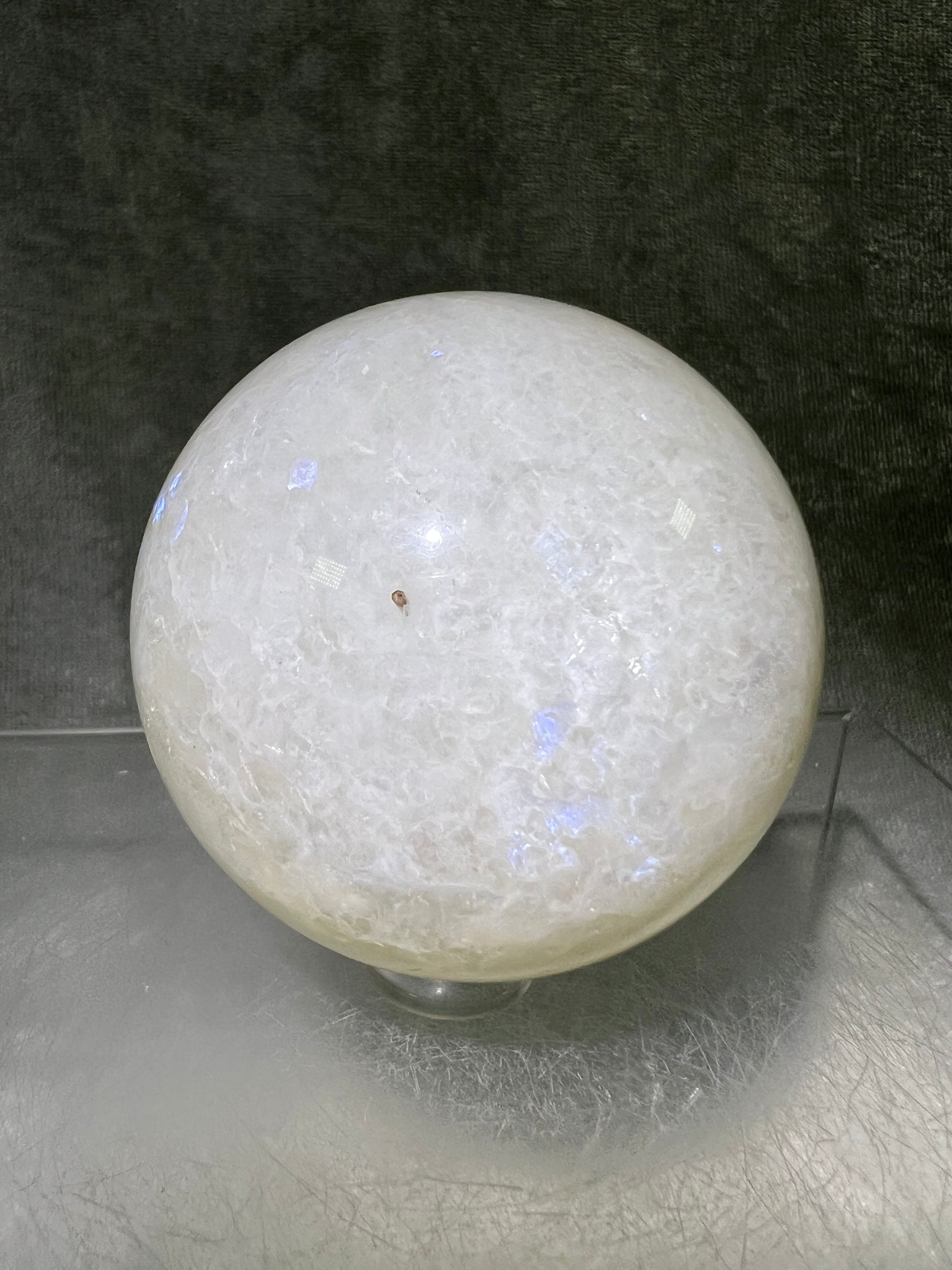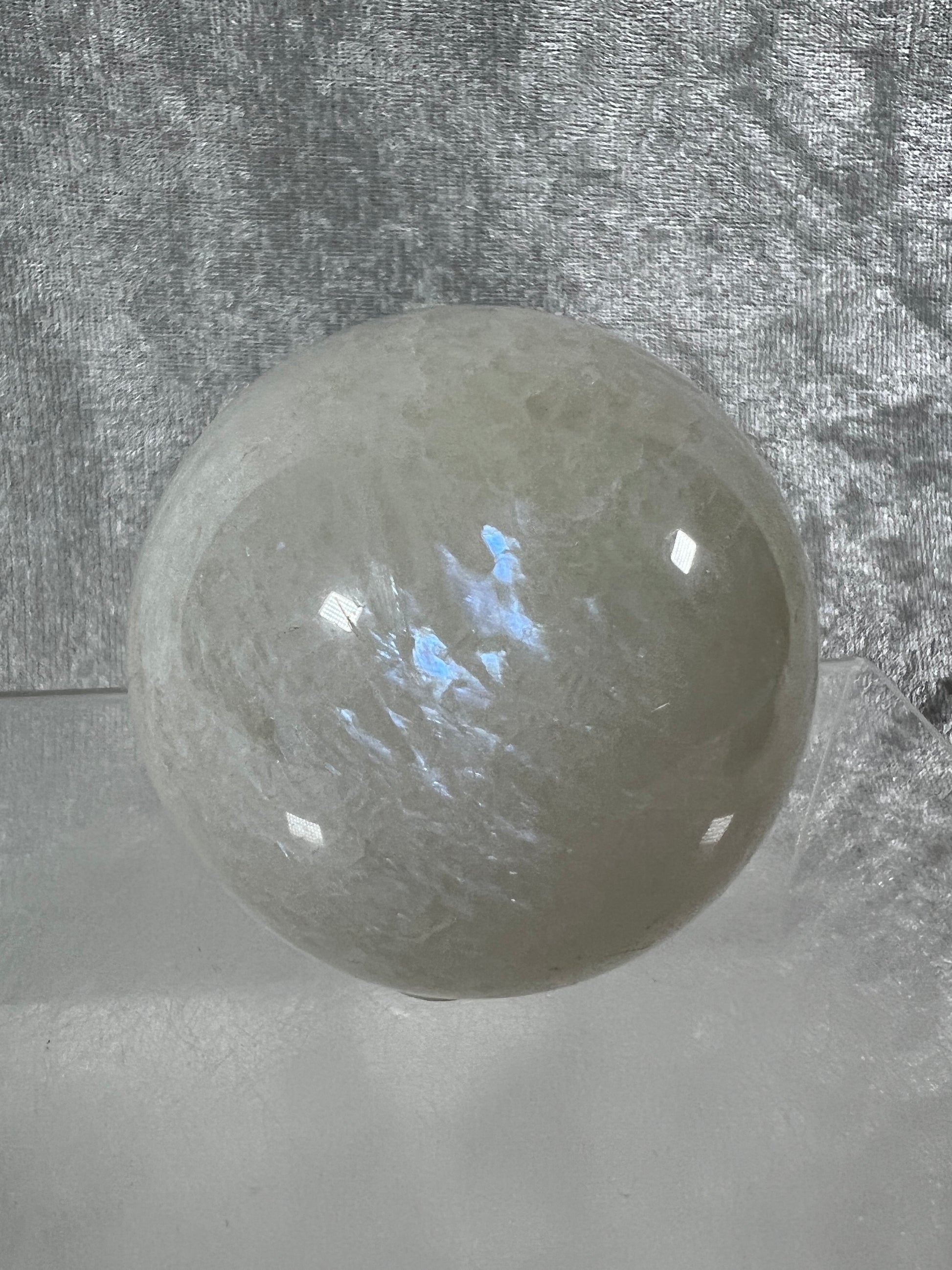 White Moonstone Crystal Sphere. Amazing Moonstone With A Stunning Blue Flash. High Quality Rare Display Sphere