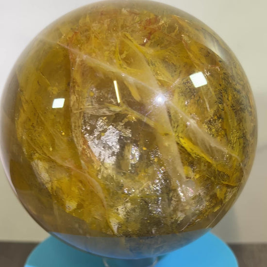 Dendritic Golden Healer Sphere. Huge Display Sphere. 127mm, 6.6 lbs. High Quality With Amazing Dendritic Inclusions.