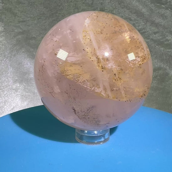 This high quality Dendritic Star Rose Quartz sphere is a gorgeous addition to any display. Its unique asterisms create a breathtaking display, and the dendritic inclusions add an extra layer of rare beauty. Truly amazing!