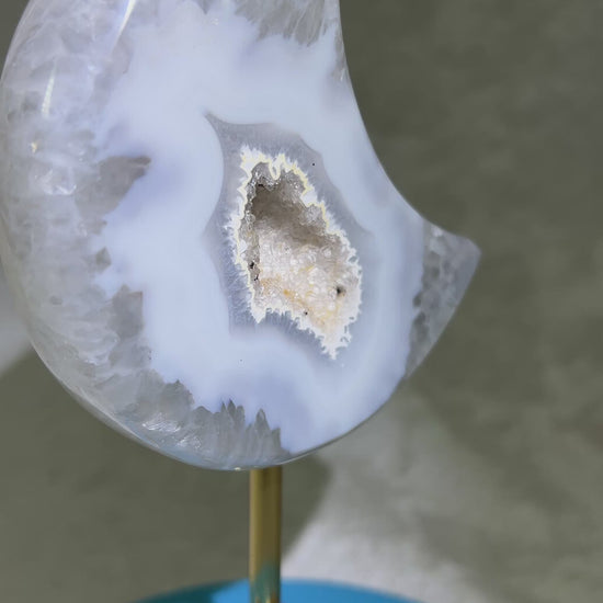 Druzy Agate Moon From Brazil. Gorgeous Sugar Druzy Moon With Custom Stand.
