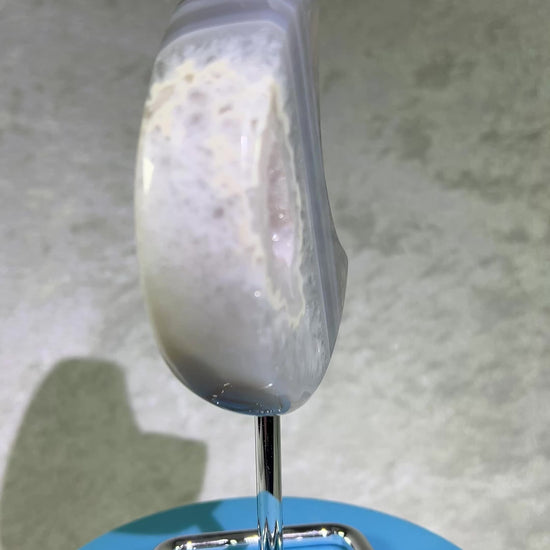 Get ready to gaze in awe at this Druzy Agate Moon from Brazil! This gorgeous piece features sparkling sugar druzy, making it truly one-of-a-kind. And with its custom stand, it'll be the perfect addition to any room (or celestial collection). Moon gazing has never been so stylish! Sizes and weights are for the crystal only.