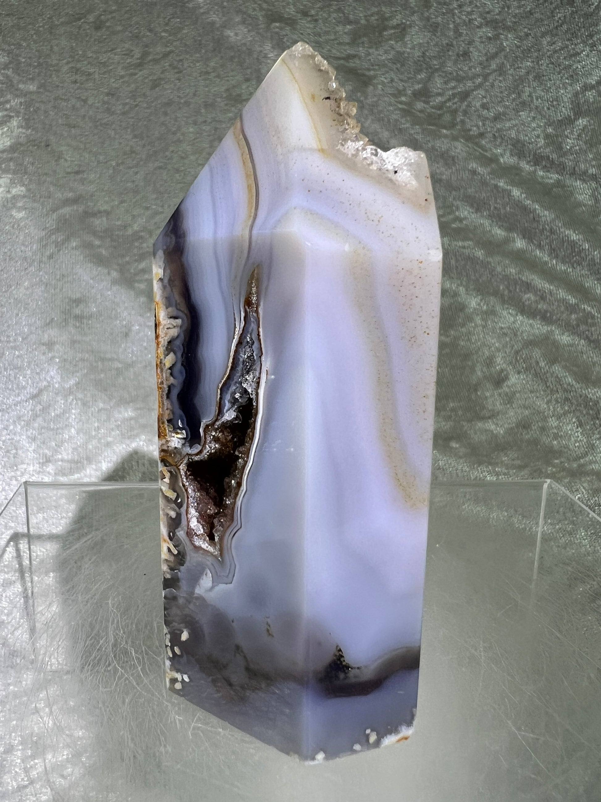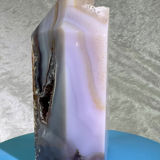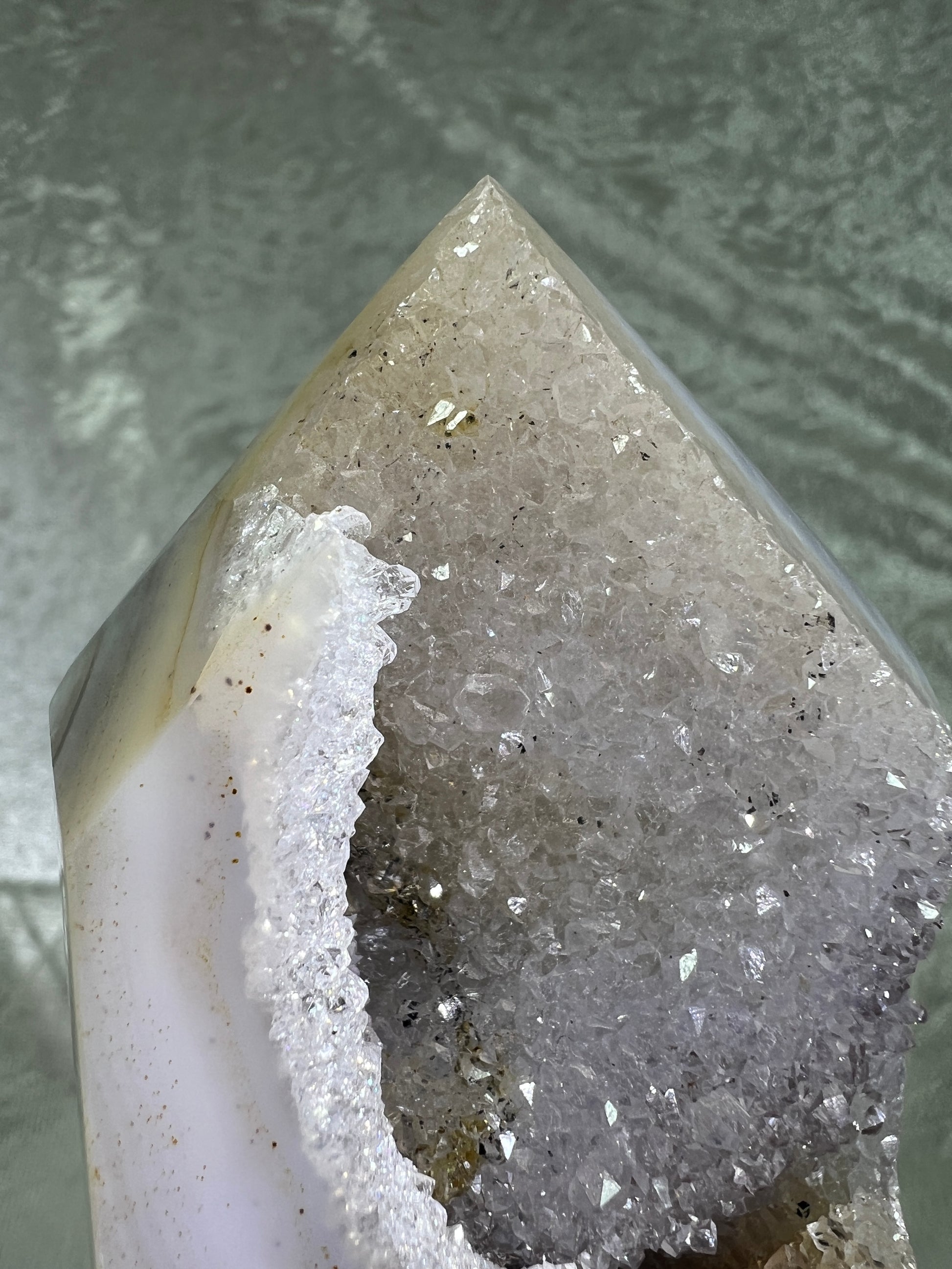 This Druzy Agate Tower from Brazil is a truly unique and high-quality addition to any collection. Its stunning sugar druzy formation makes it one of a kind and an incredible display piece. Expertly sourced from Brazil, this tower is a must-have for any crystal enthusiast.