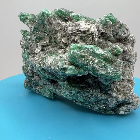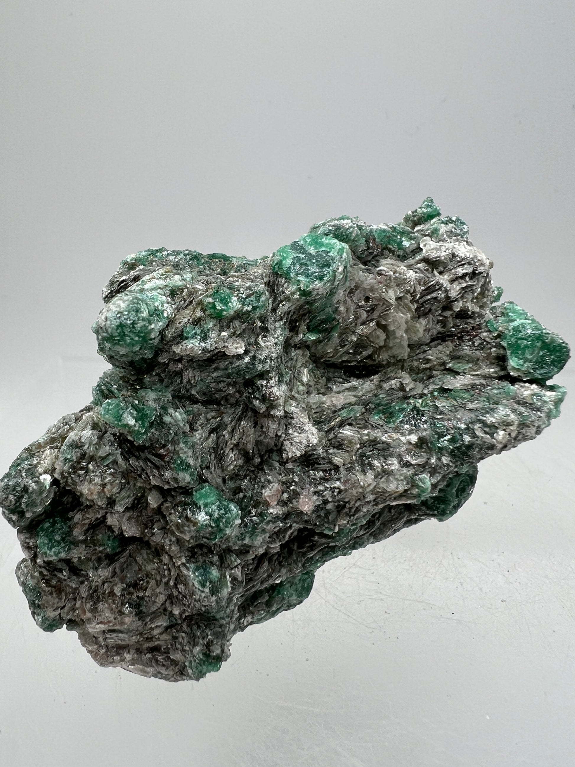 Amazing African mineral specimen. What was initially identified as Emeralds in Matrix. Lab testing has revealed they are not true Emeralds, as they lack Beryl, the mineral behind Emeralds green hue. Instead, they are a newly identified Chromium-rich mineral in the Mica family, now classified as Emerald Mica (Chrome Muscovite). While not genuine Emeralds, these newly discovered specimens feature stunning green hues and intricate matrix patterns, making them unique and valuable. Discovered in Mutoko, Zimbabwe. Very limited supply, so don’t miss out.