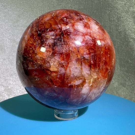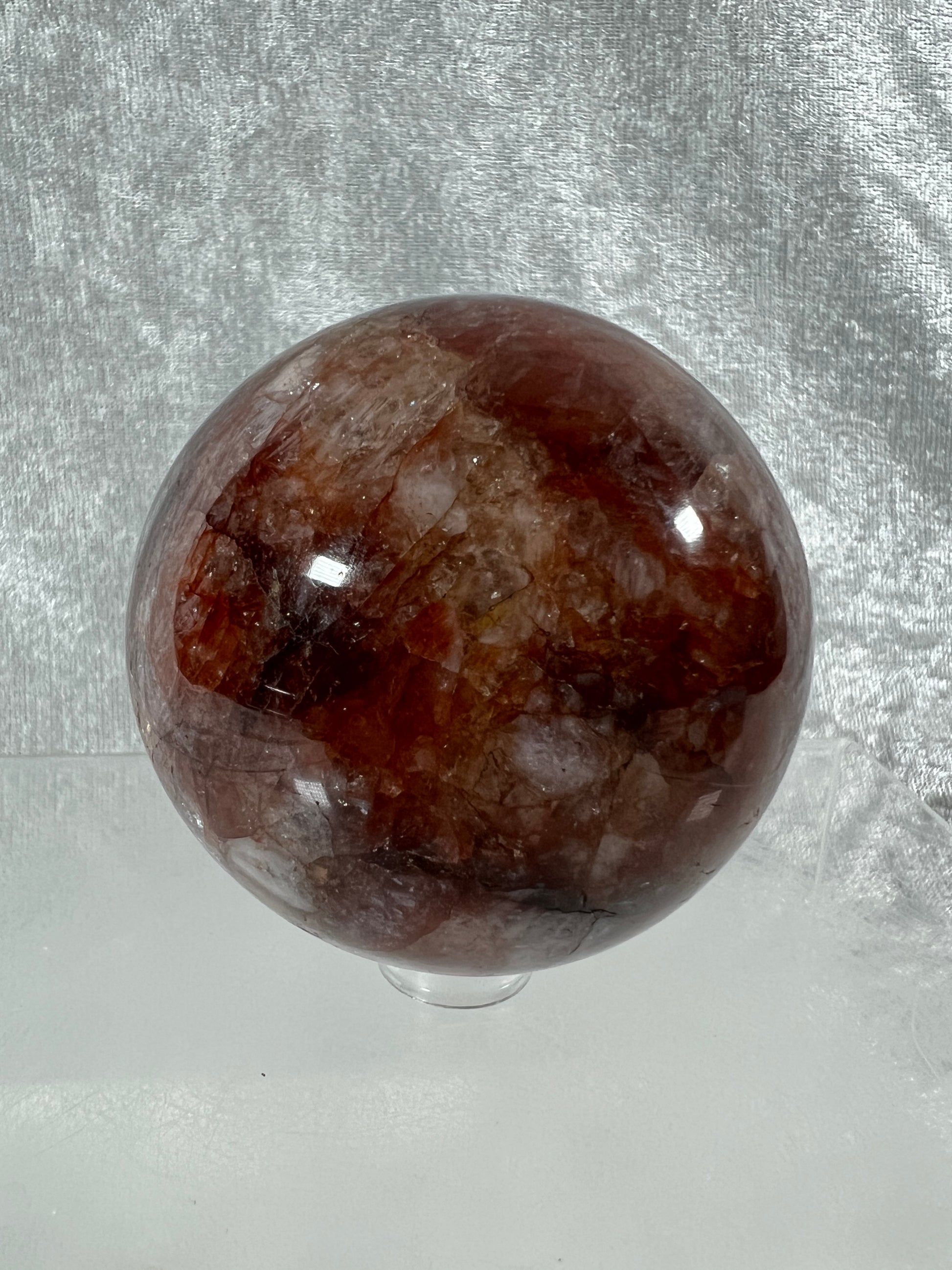 Fire Quartz Sphere. 63mm. Gorgeous Flash And Crystallization. High Quality Hematoid Crystal From Madagascar.