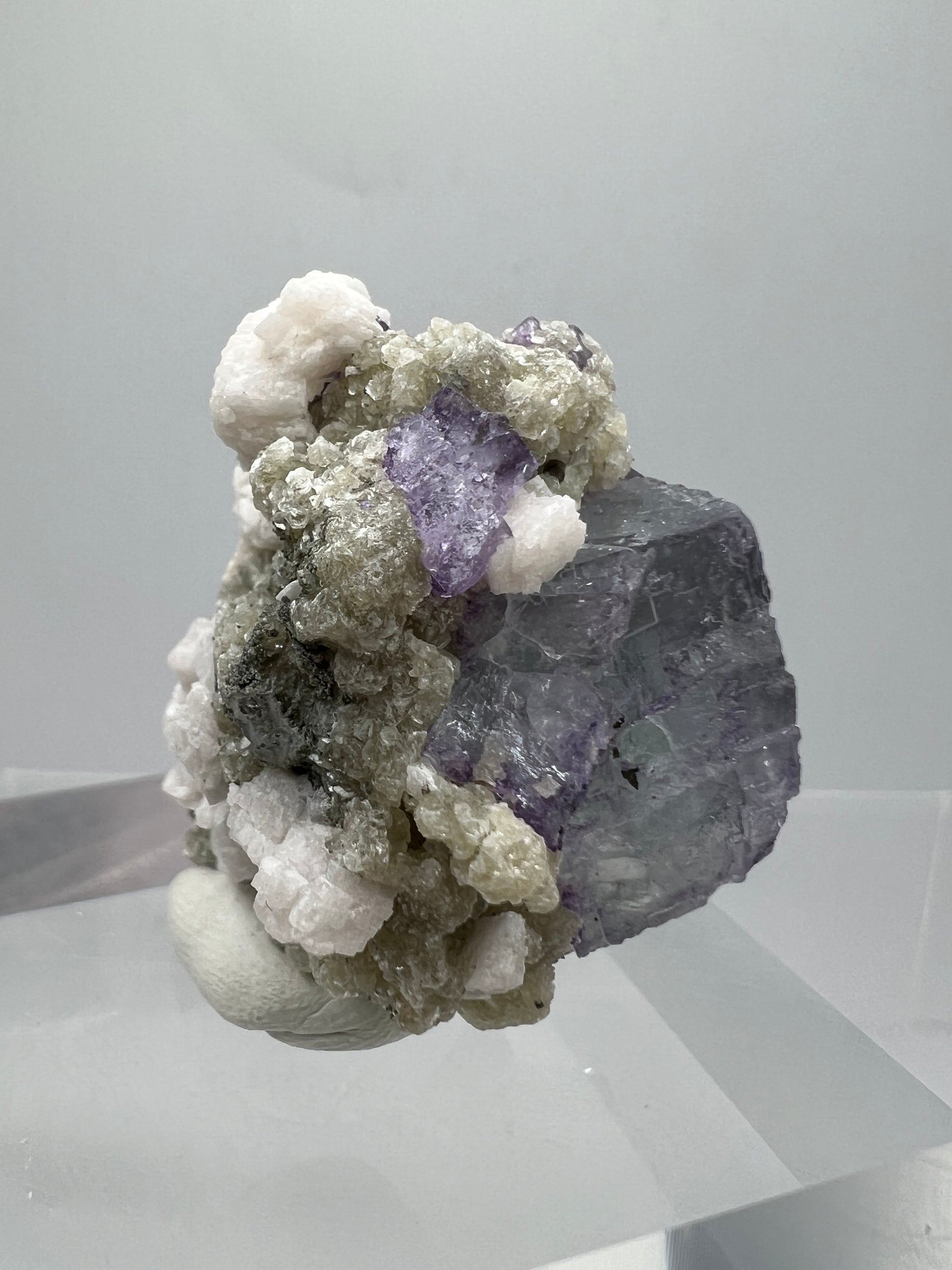Fluorite, Calcite, And Druzy Quartz Specimen. World Famous Yaogangxian Fluorite Cubes. Beautiful Mixed Mineral Specimen.