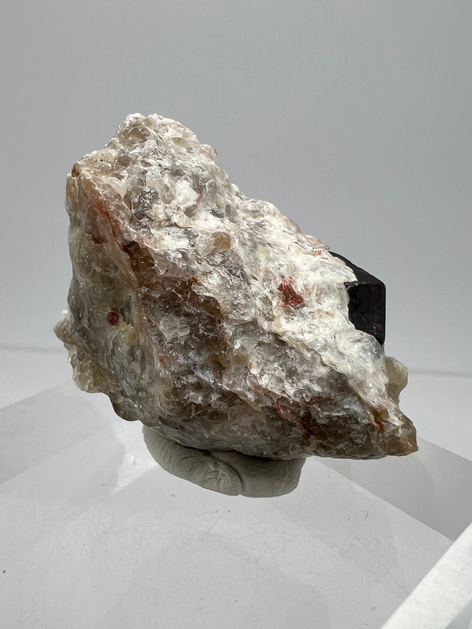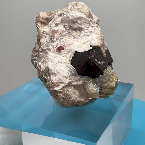 Explore the beauty of nature with this Andradite Garnet Specimen from Karibib, Namibia. Mined from the highest quality minerals, this gorgeous red garnet in matrix is a rare African display crystal. Let this specimen bring a piece of the world to your collection. Clear acrylic display base is included.