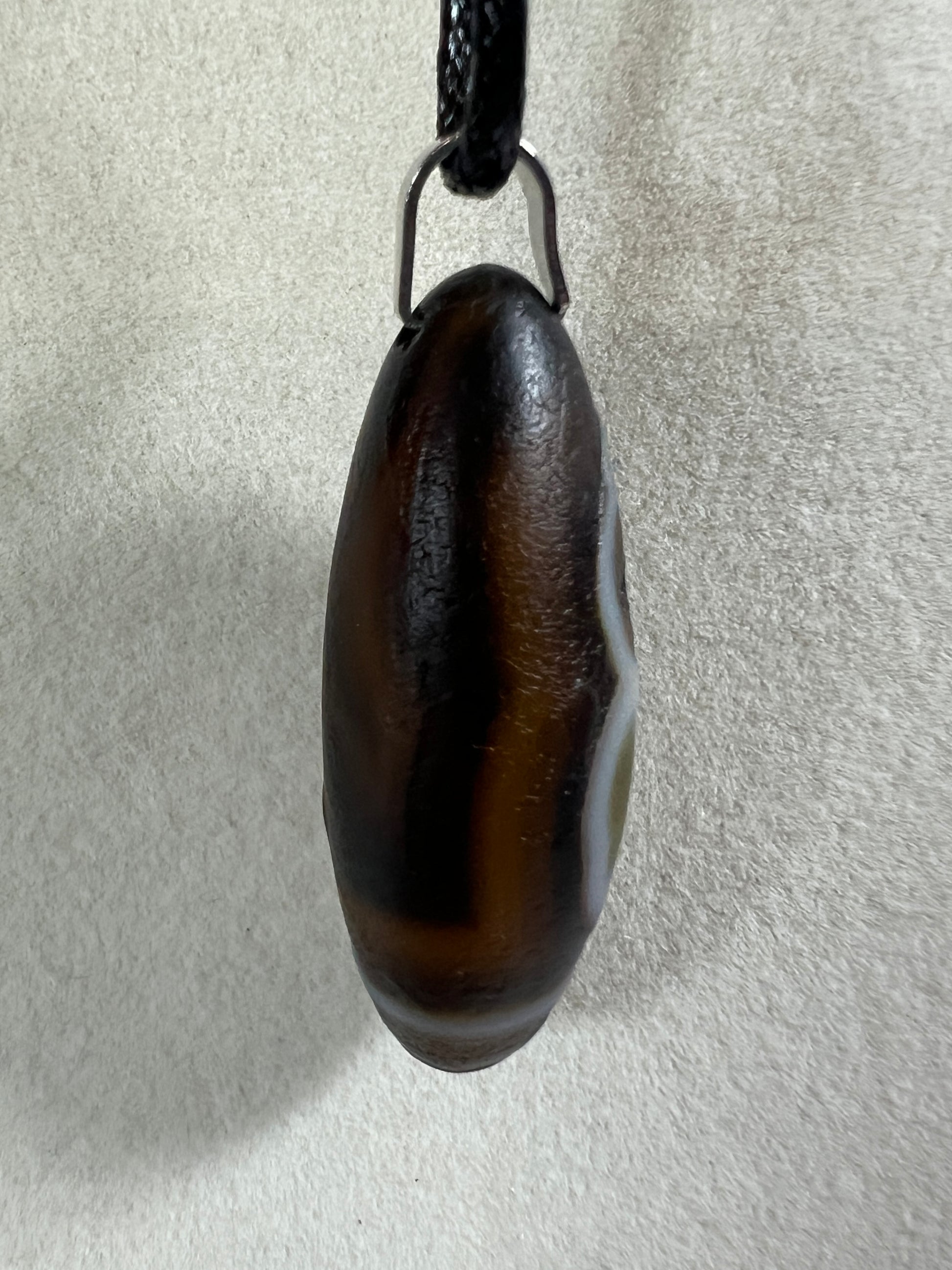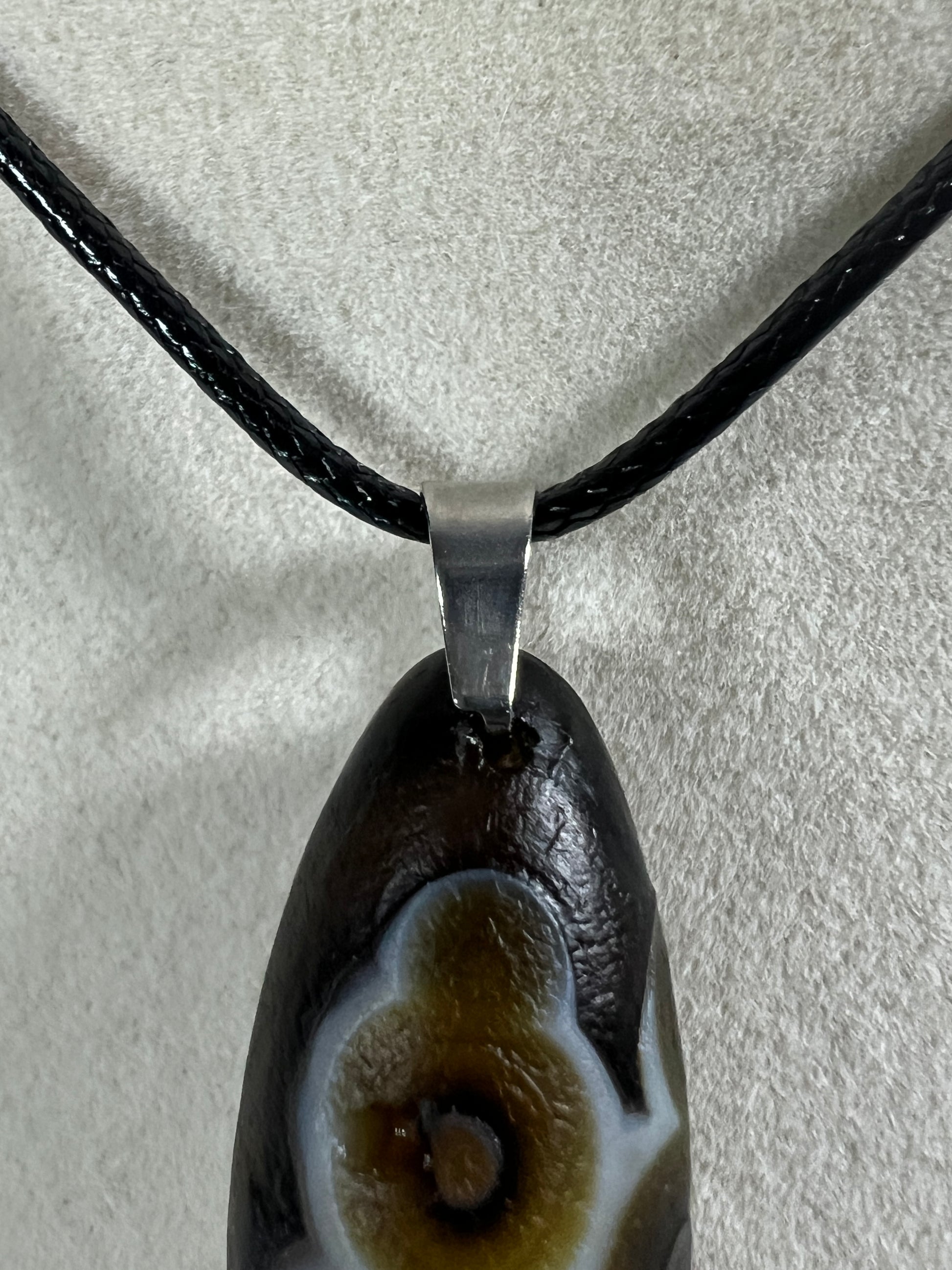 Discover the rare and famous Gobi Agate Pendant. Found in Gobi Desert dry riverbeds of Southeast Asia, this colorful, botryoidal chalcedony is a unique addition to any crystal necklace collection. Add a touch of natural beauty to your style with this world-renowned gem. Black leather cord necklace is included.