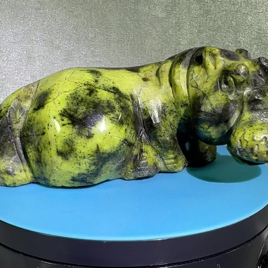 Leopard Stone Hippo Carving. Amazing Crystal Art From Zimbabwe. Incredible Collectors Piece.