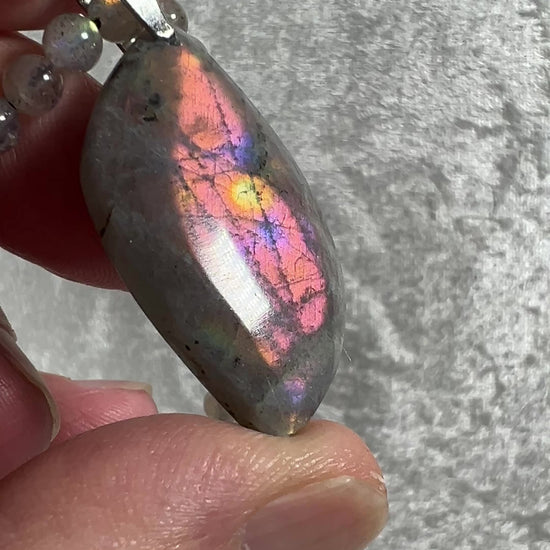 Labradorite Crystal Pendant. Stunning High Quality Jewelry. Custom Made Labradorite Beaded Necklace