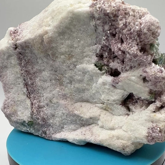 Lepidolite and Green Tourmaline Specimen. Gorgeous Mineral Cluster From Brazil. Lots Of Flash And Crystallization. Beautiful Color Contrasts.