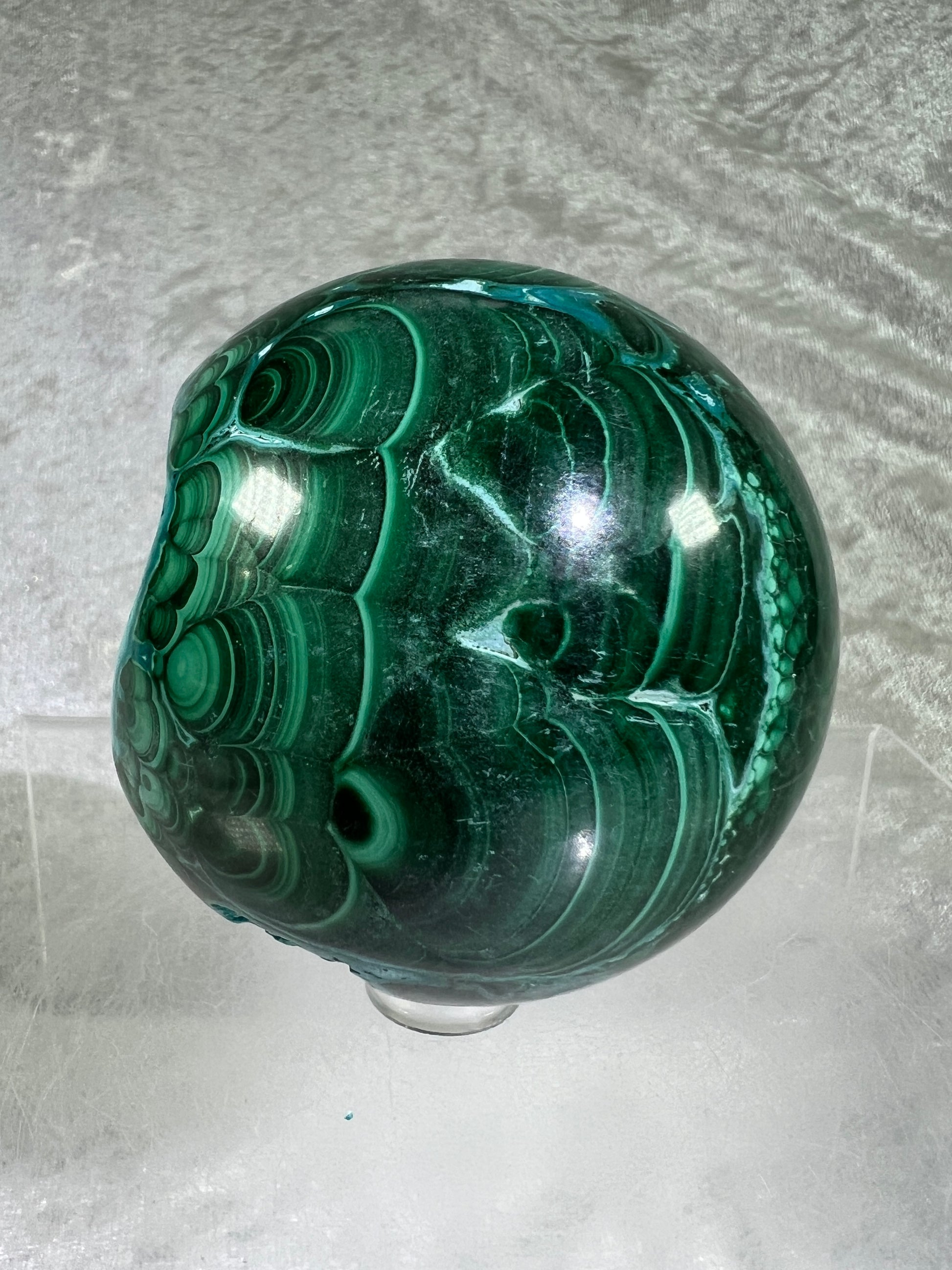 Malachite And Druzy Chrysocolla Sphere. 69mm. Gorgeous Rare Collectors Piece. Amazing Patterns With Vibrant Colors.