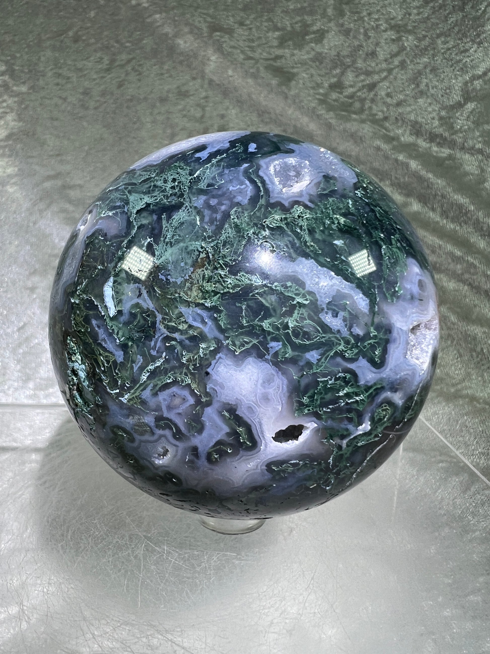 Moss Agate Sphere. 77mm. Amazing Druzy Blue Moss Agate. Rare Colors With Gorgeous Patterns.