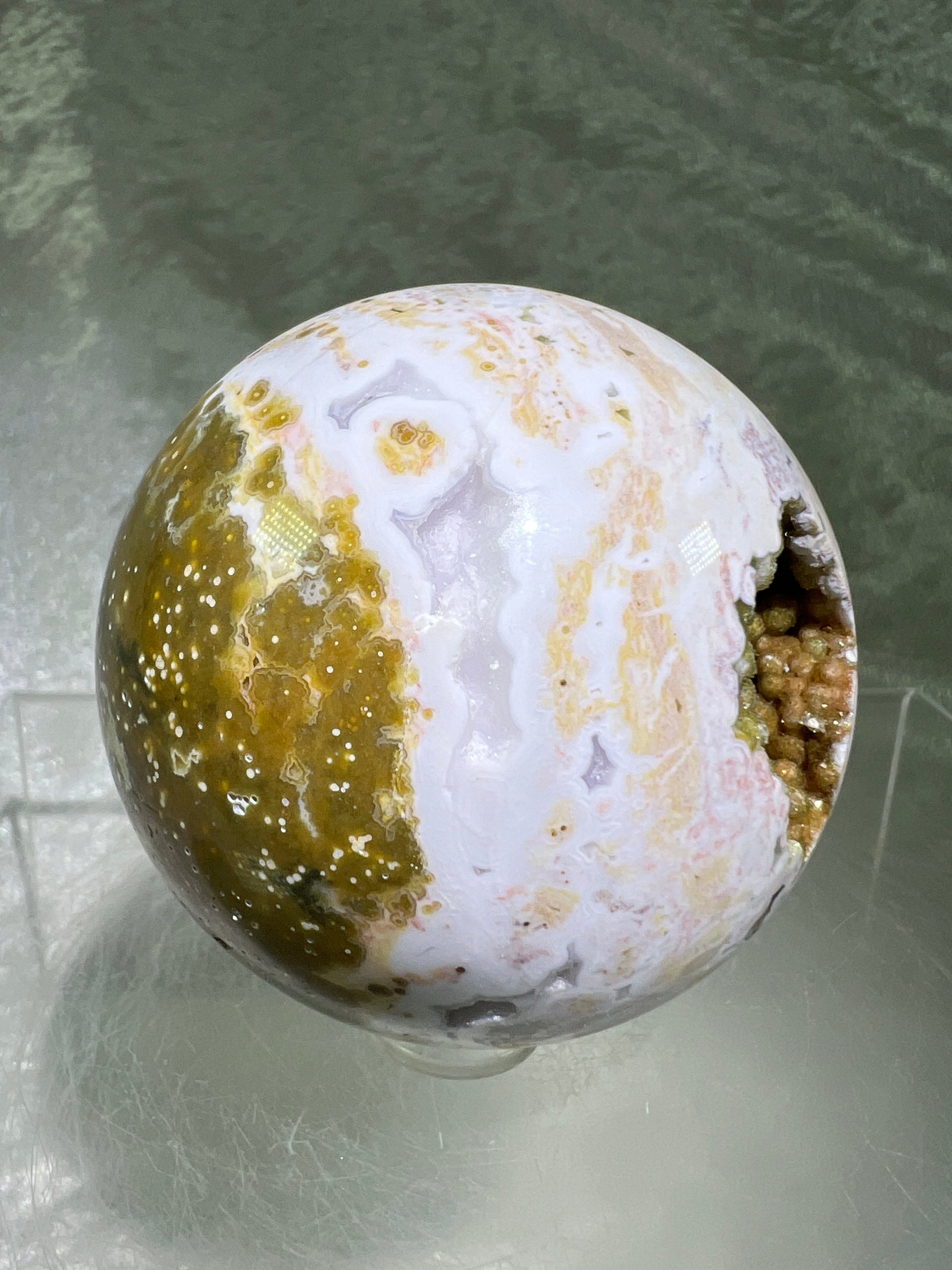 Ocean Jasper Sphere. Gorgeous Sugar Druzy Sphere. Stunning Colors On This Amazing Display Crystal