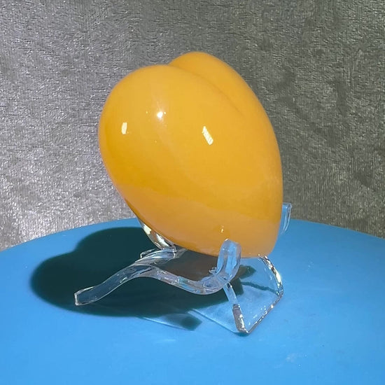 Fall in love with this small but mighty Orange Calcite Heart Carving. Its beautiful color and cute size will add a touch of whimsy to any space. Made with high quality orange calcite from Mexico, and a stand included for easy display. (Trust us, it's prettier than a box of chocolates.)