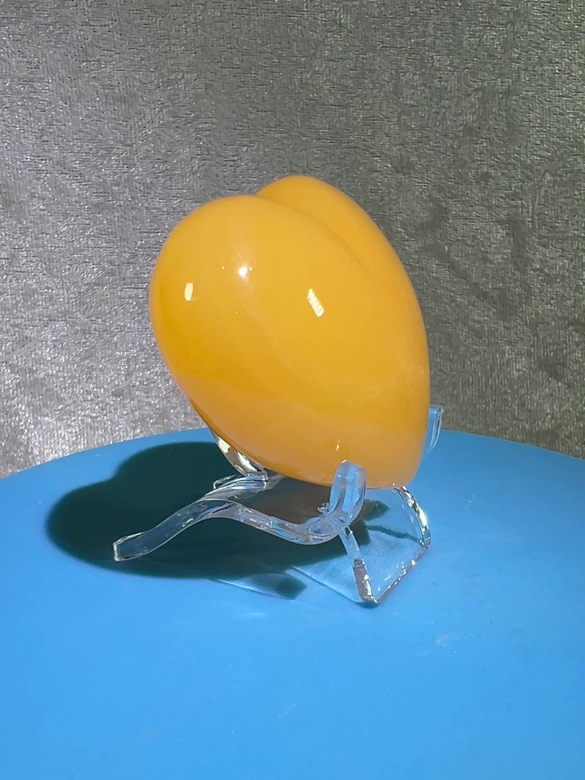 Orange Calcite Heart Carving. Very Pretty Calcite Carving From Mexico. Stand Included