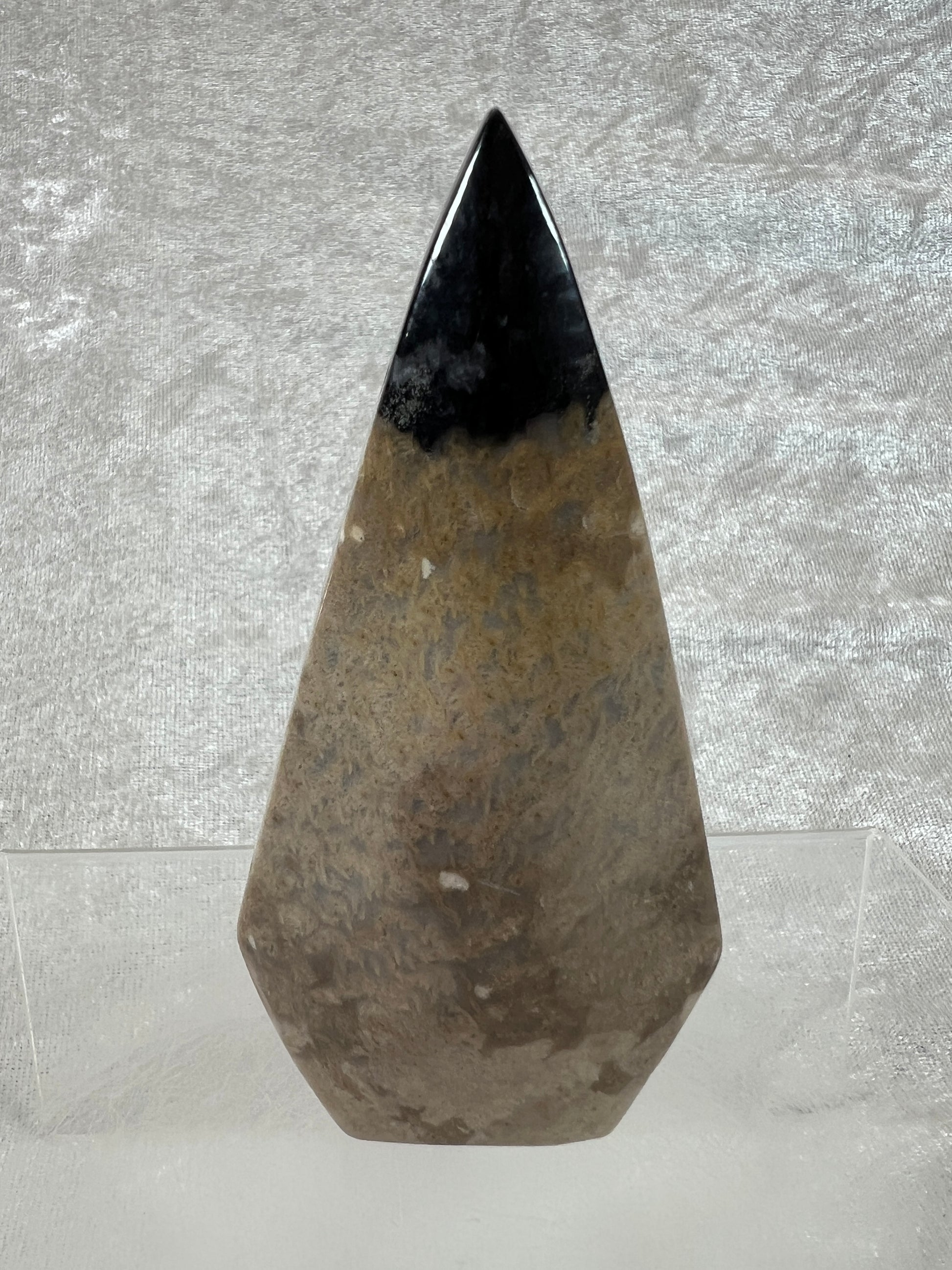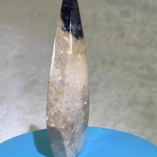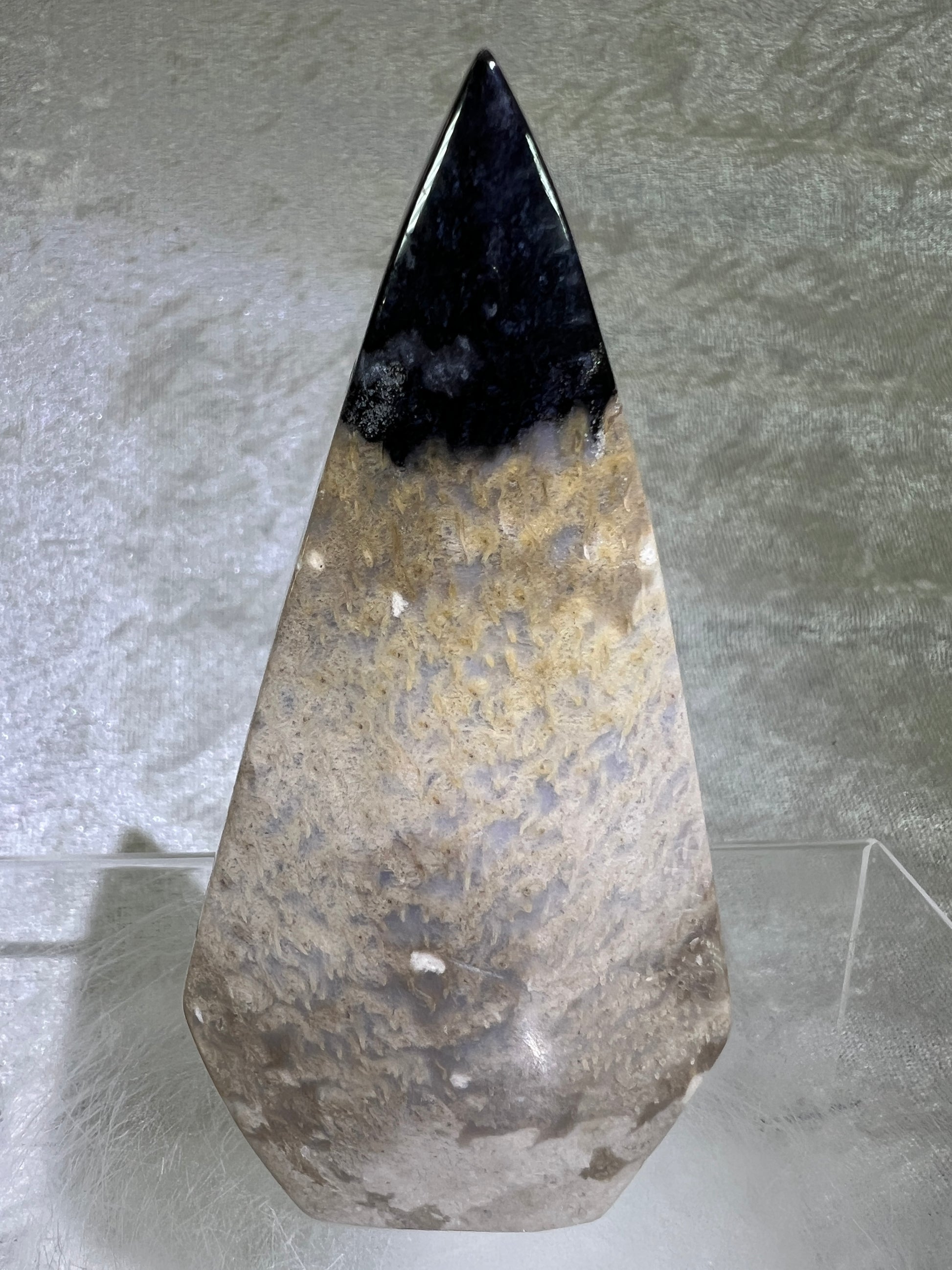 Palm Root Agate Freeform Flame. Gorgeous Fossilized Black Palm Root Agate. Very Unique Crystal Flame.