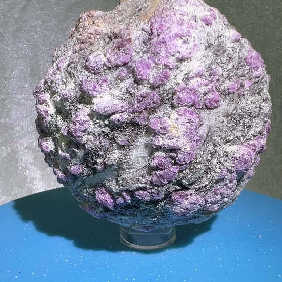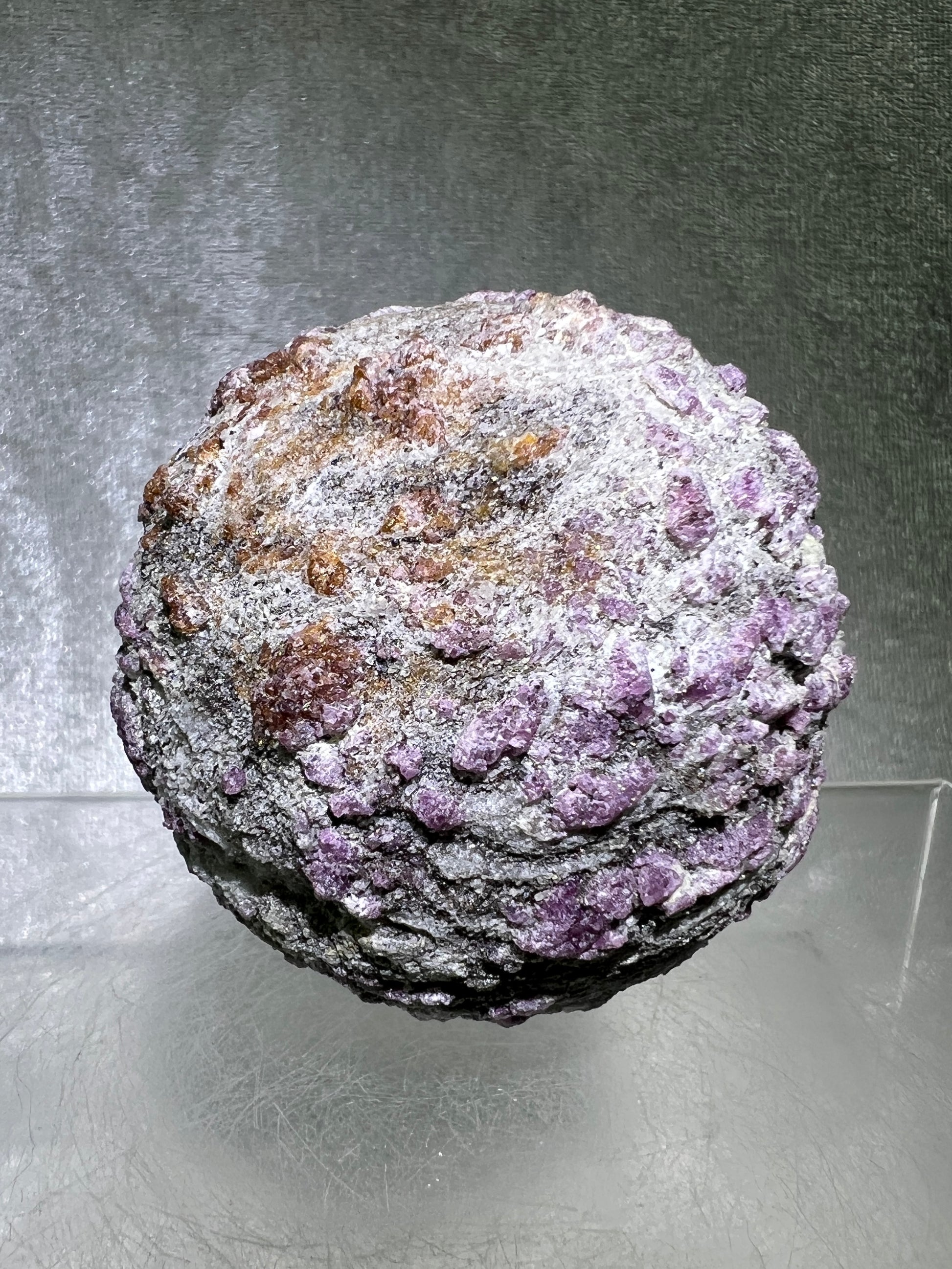 Very unique sphere, raw unpolished plum blossom on matrix sphere. The crystal was shaped into a sphere, but not finished to a polish leaving the tourmaline specimens much more visible. Super cool display piece that you don’t see anywhere else.