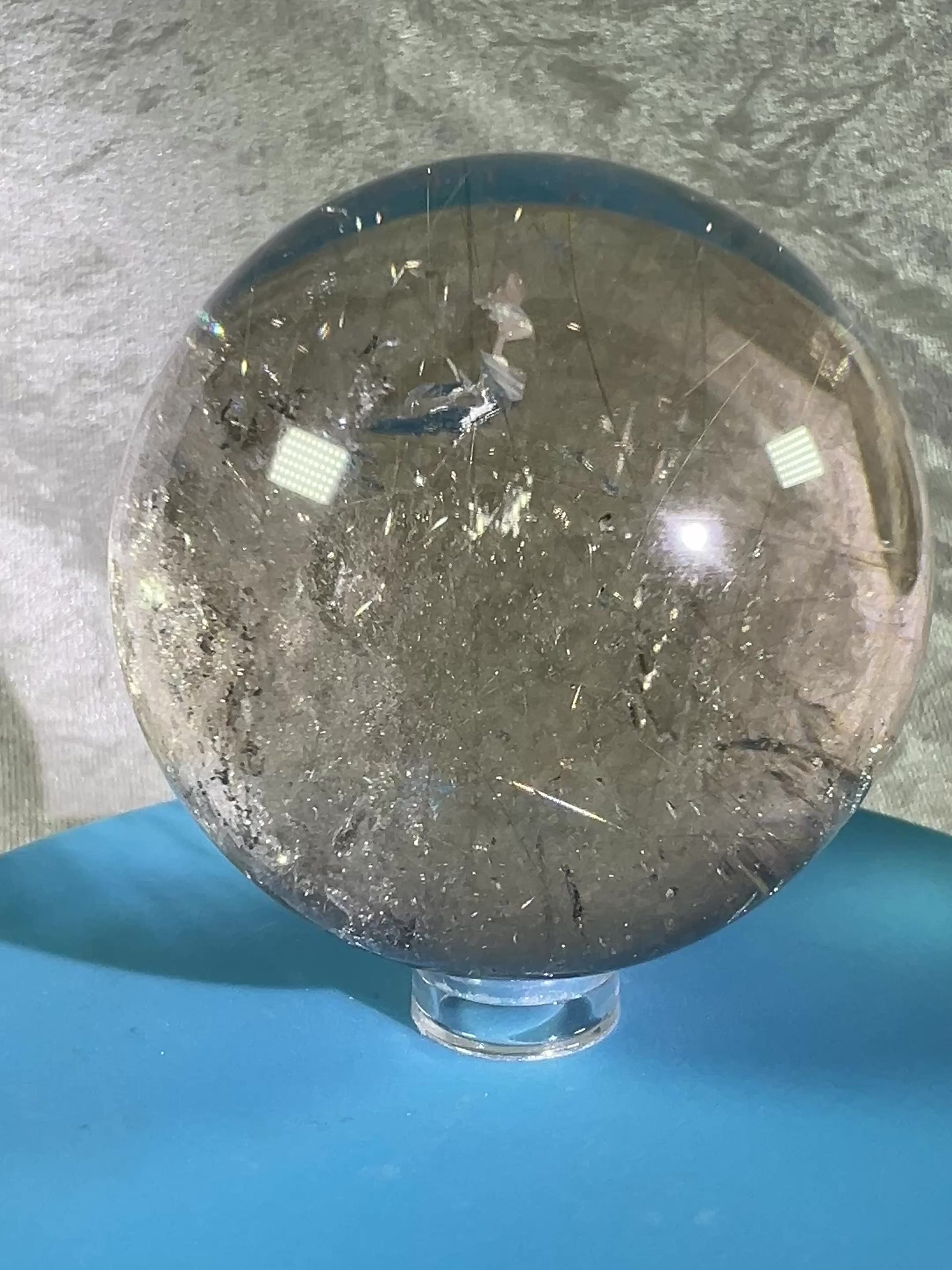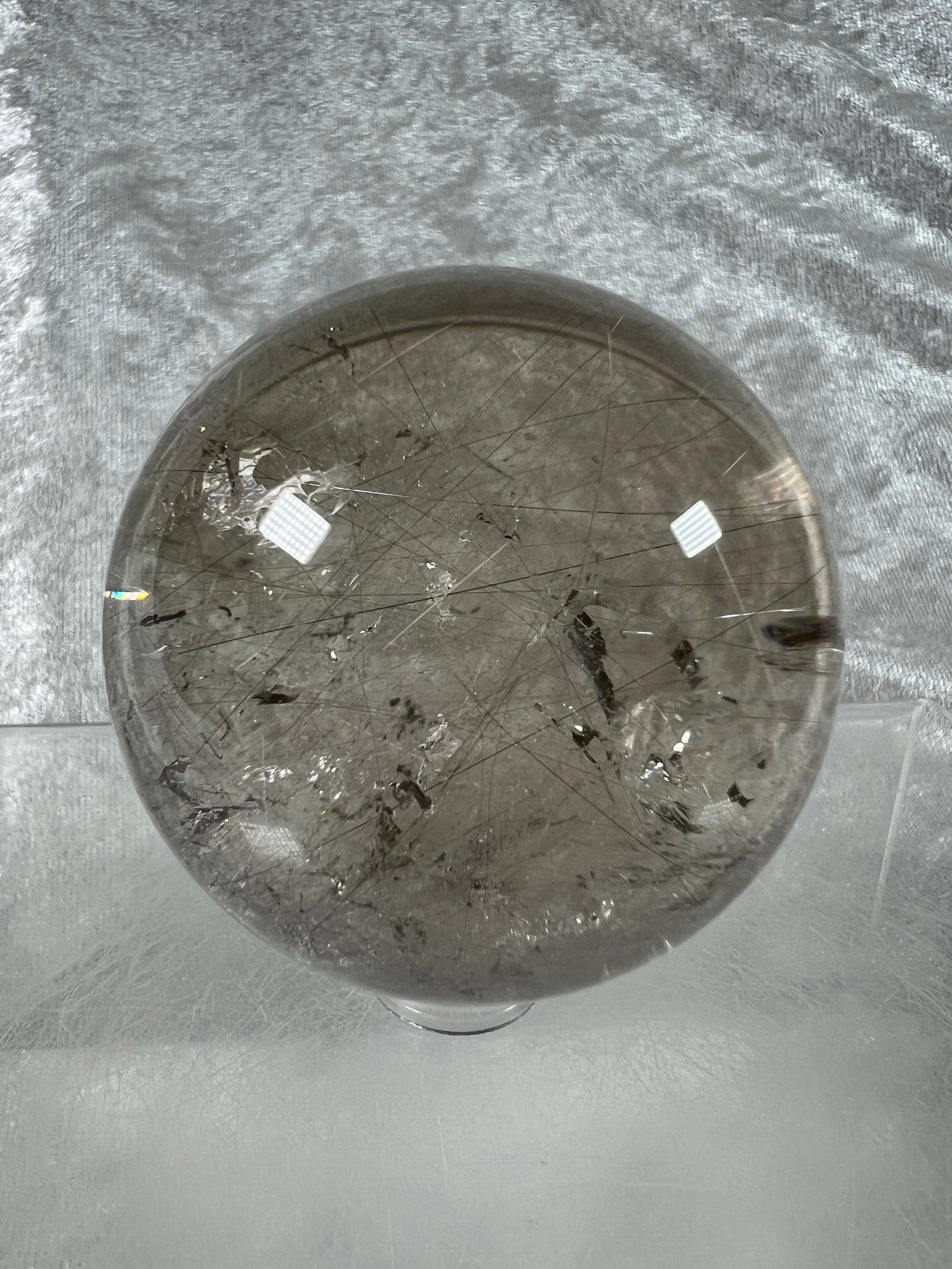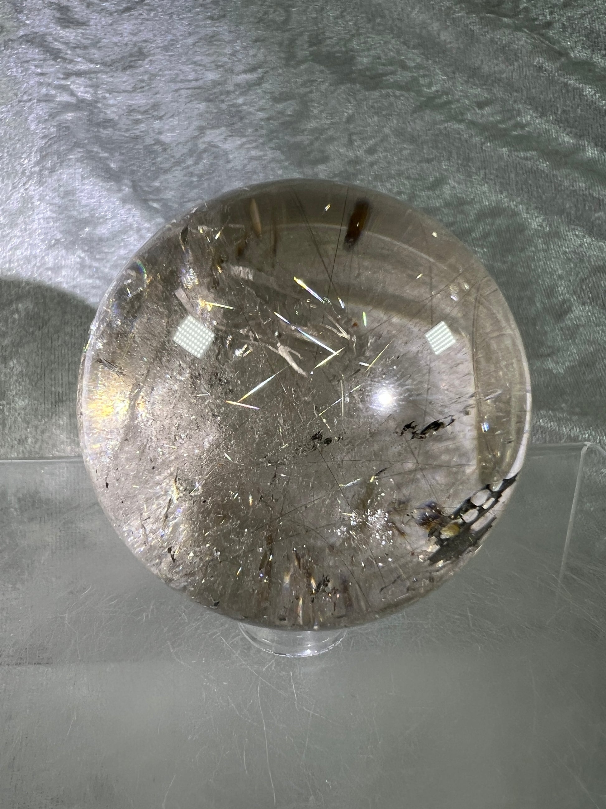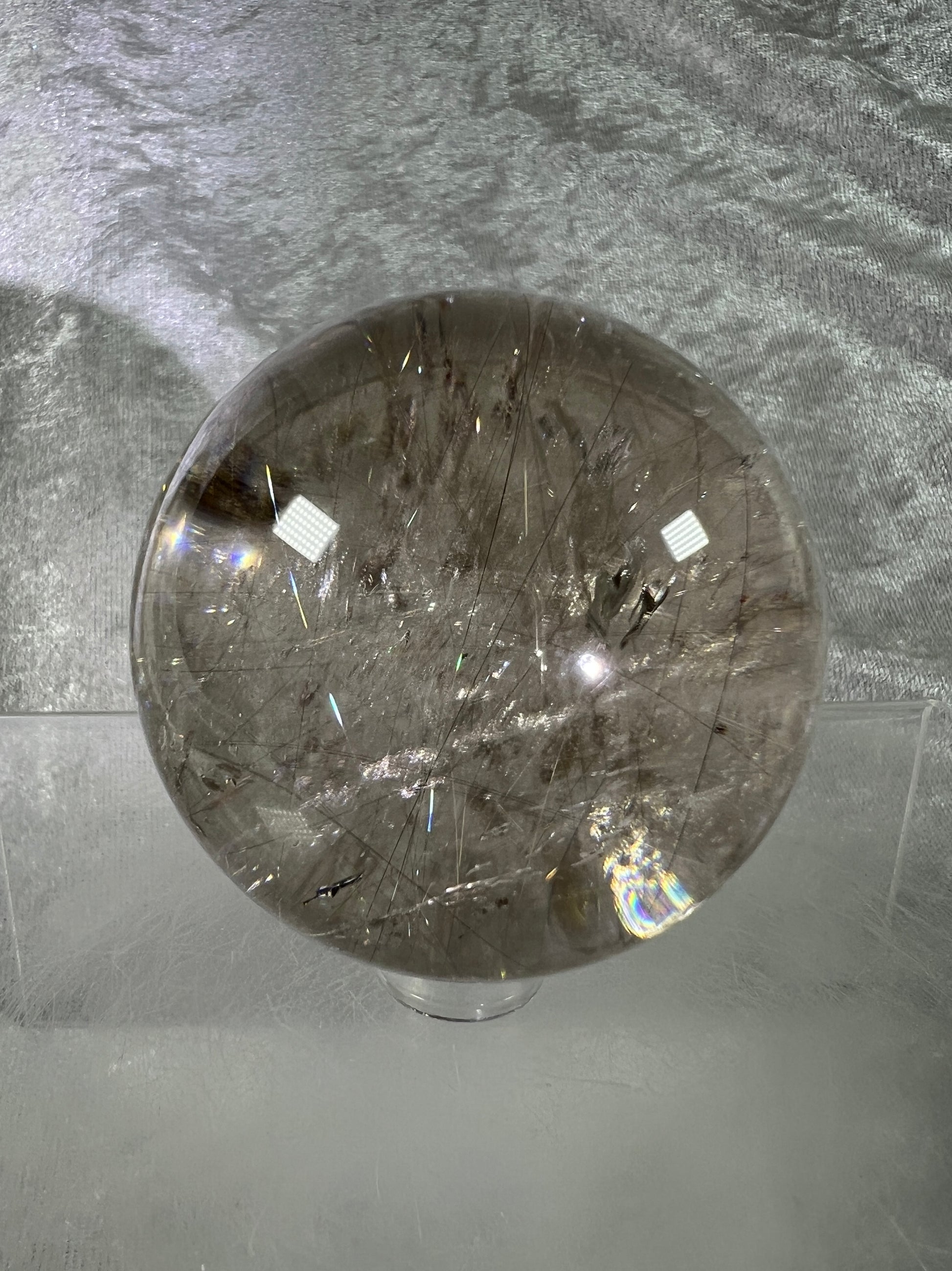 Elevate your space with our luxurious Rutile Quartz Sphere. Expertly crafted with high quality Golden Rutilated Quartz, this stunning display sphere boasts mesmerizing rainbows and intricate gold rutile inclusions. Bring a touch of sophistication and elegance to any room with this unique and exclusive piece.