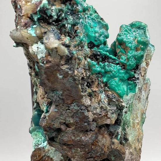 Silica Chrysocolla Specimen. Very Rare Display Crystal. High Quality Botryoidal Bubblegum Chrysocolla, Malachite, And Heterogenite.