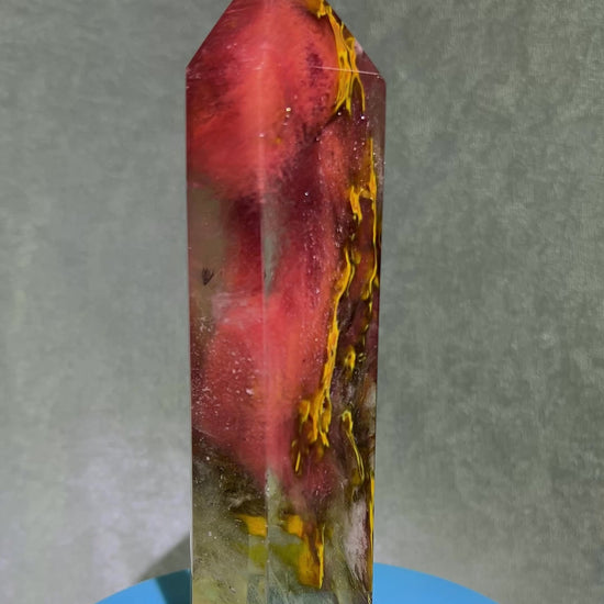 Smelting Quartz Tower. Gorgeous And Large Display Tower. Stunning Colors And Patterns. Incredible Red Tiger Skin Patterns.