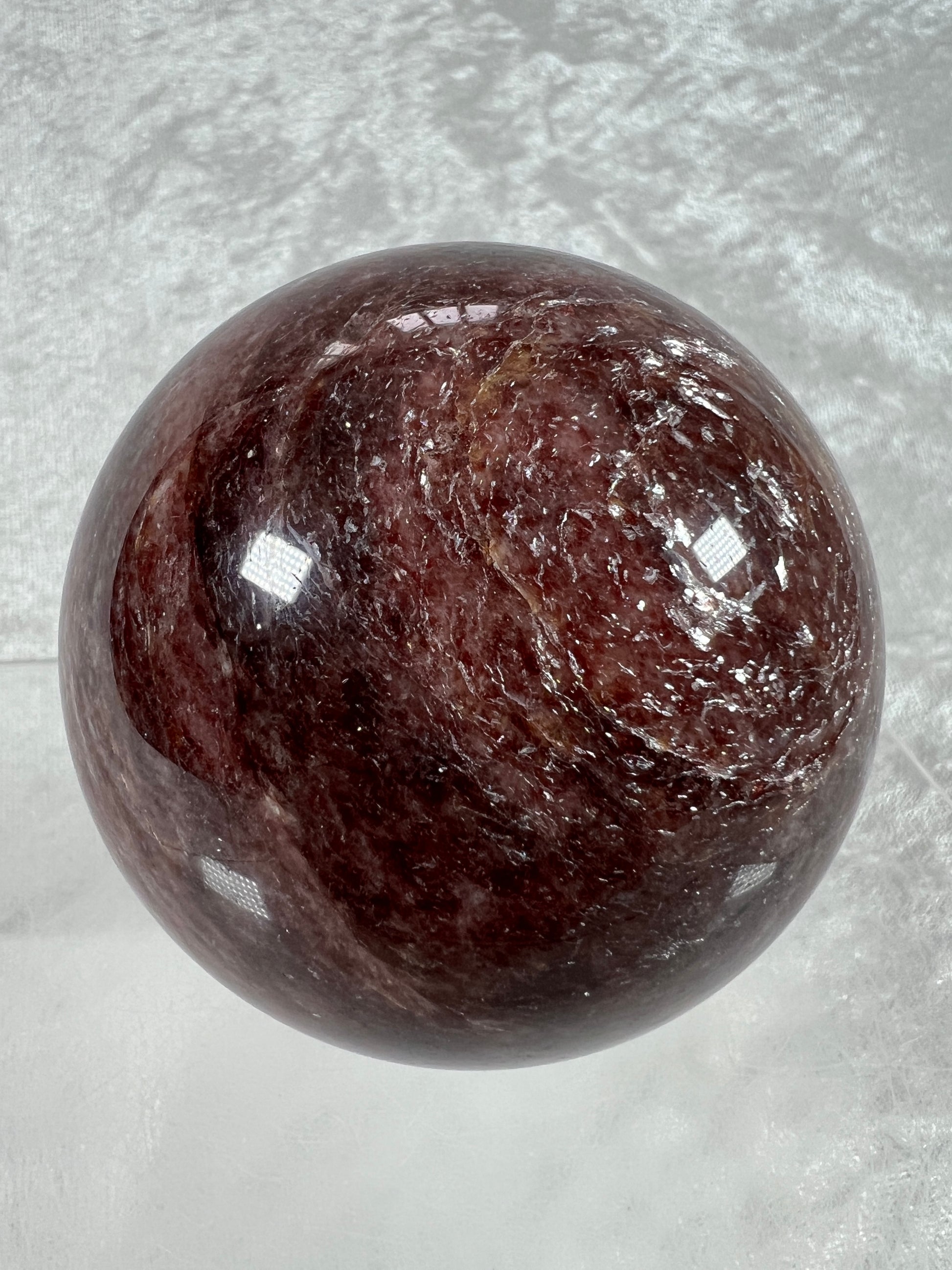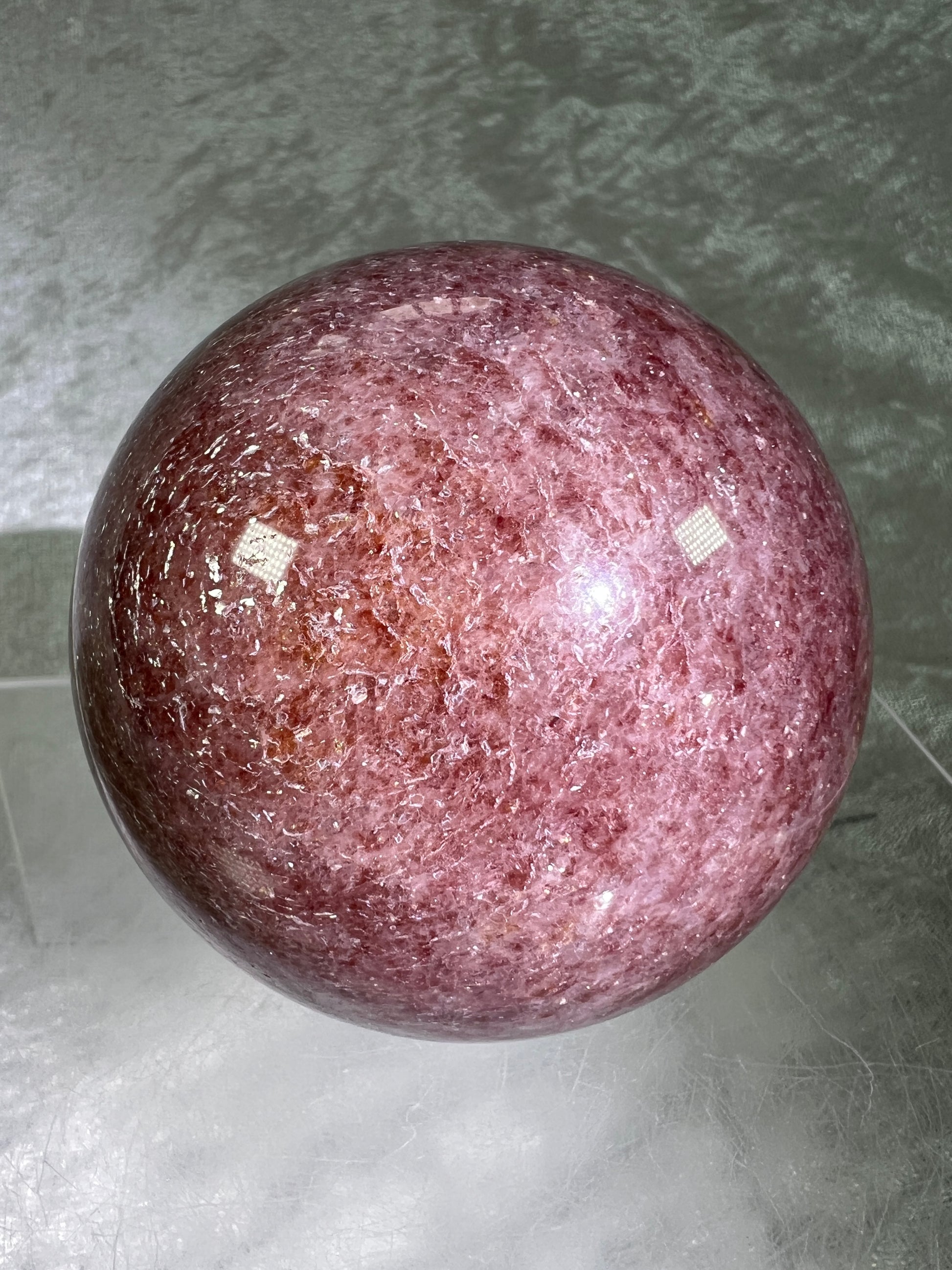 Strawberry Quartz Sphere. 71mm. High Quality Rare Quartz From Brazil. Gorgeous Mica Flash.