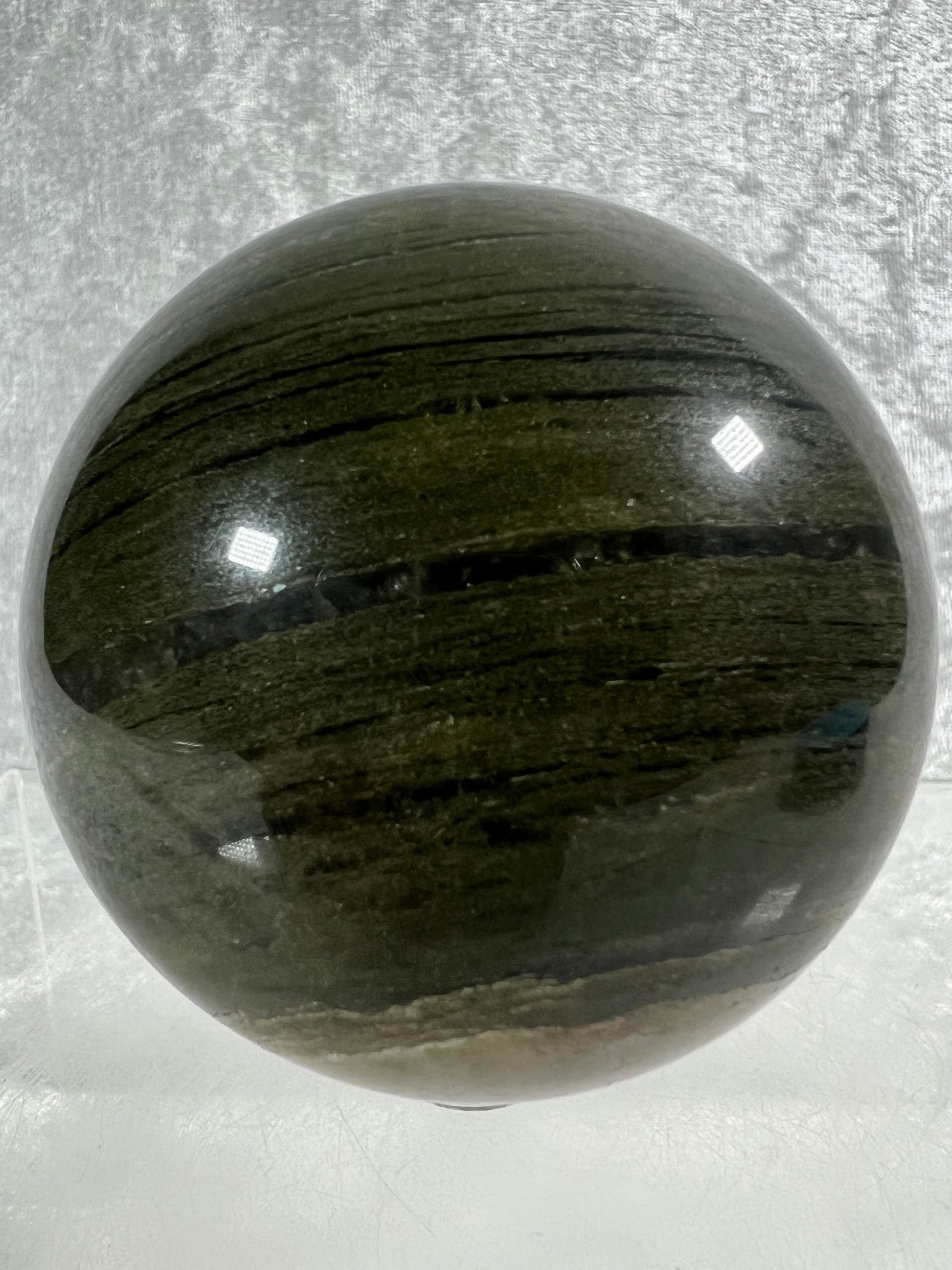 Vesuvianite Crystal Sphere. 71mm. High Quality Idocrase Display Sphere. Incredible Banding And Patterns.