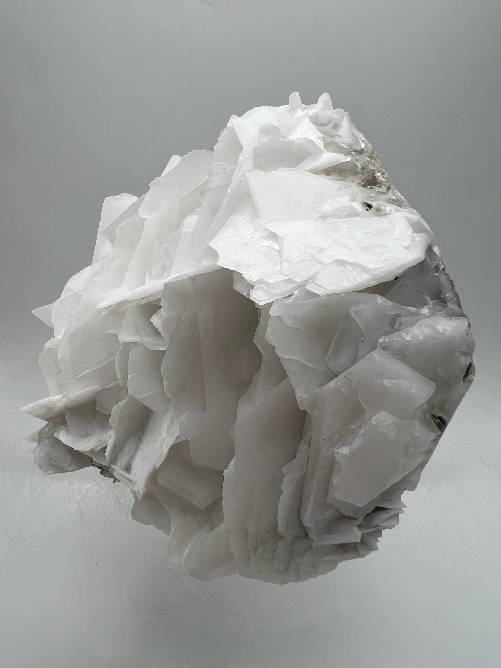 Stunning and elegant, this high-quality White Rose Bladed Calcite is a must-have for any collector. The smooth, bladed texture and angelic appearance make it a beautiful display piece. Bring a touch of beauty and serenity into your space with this stunning calcite specimen.