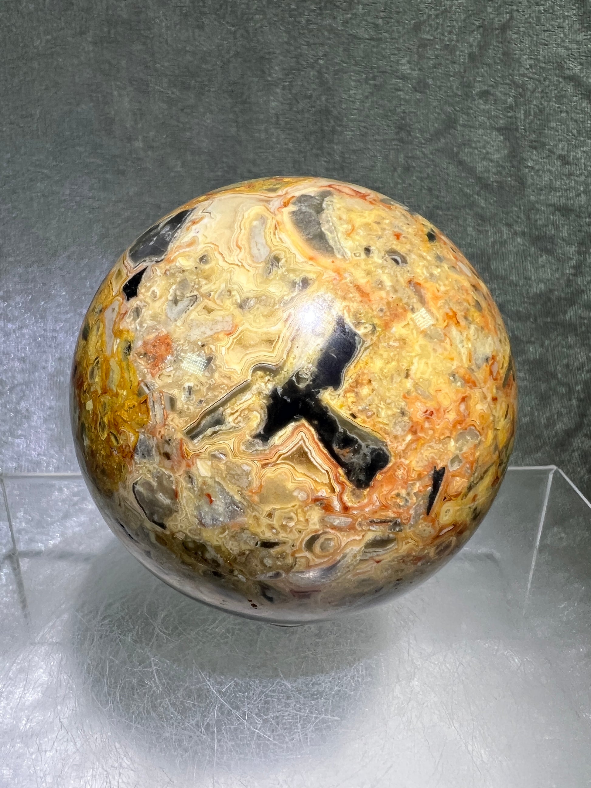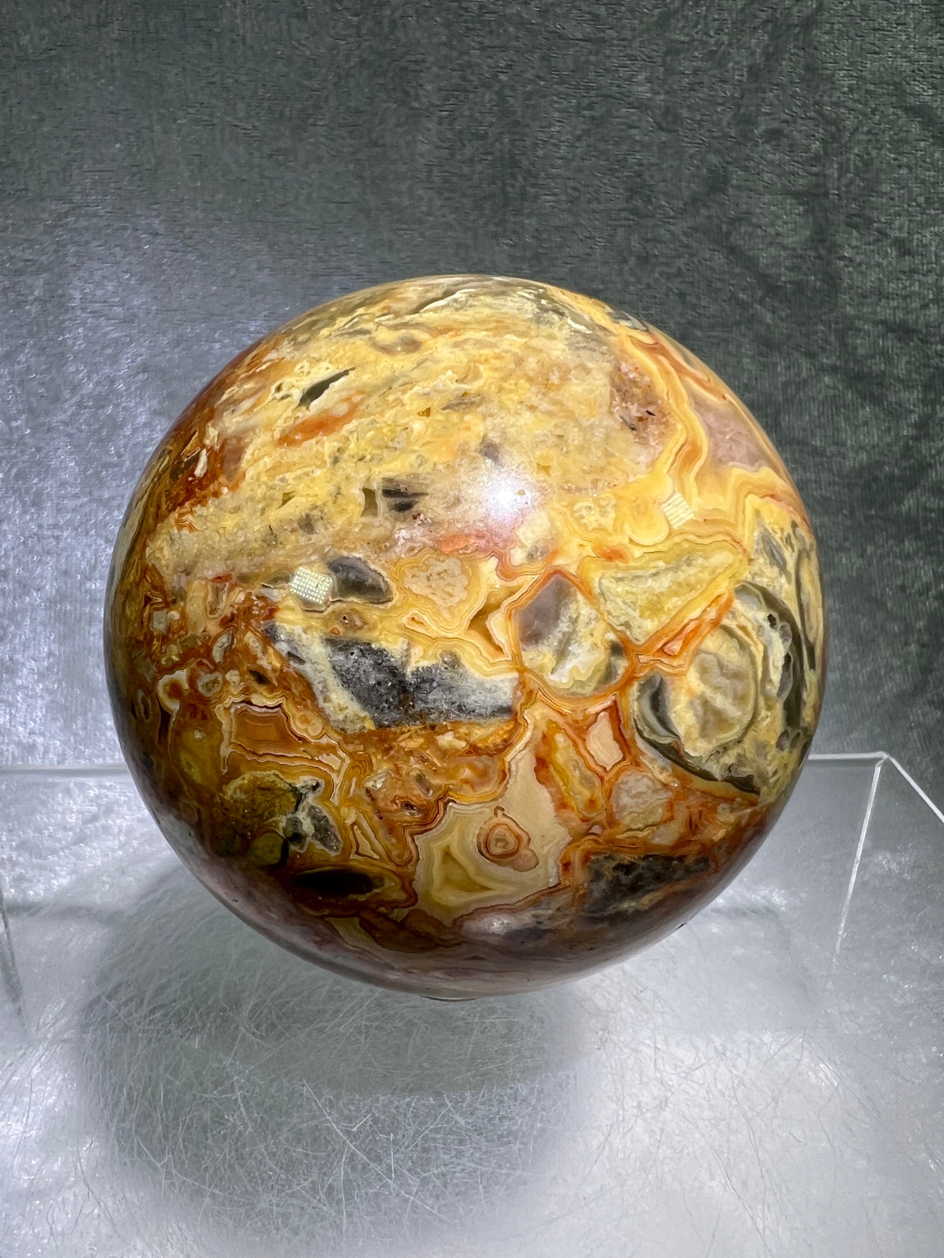 Crazy Lace Agate Sphere. 72mm. Stunning Lace And Patterns On This Sphere. Amazing Indonesian Crazy Lace Display Sphere